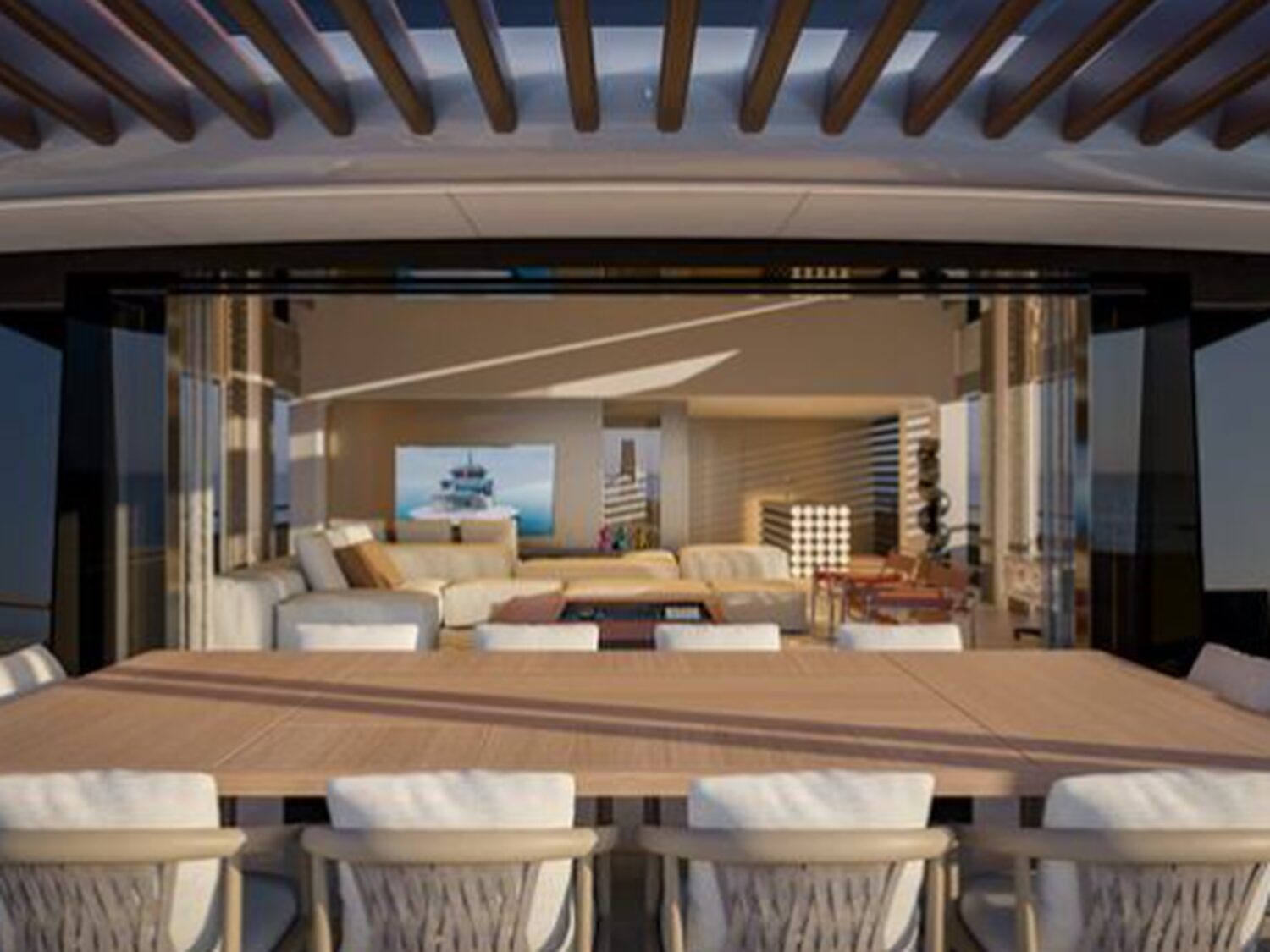Forward crew quarters house up to 12–14 crew members in dedicated cabins, ensuring professional service and seamless operation while maintaining guest privacy. Social areas on board are designed for versatility and enjoyment, with comfortable salon spaces, elegant dining areas, and multiple outdoor decks for sun lounging, al fresco meals, or evening gatherings under the stars.