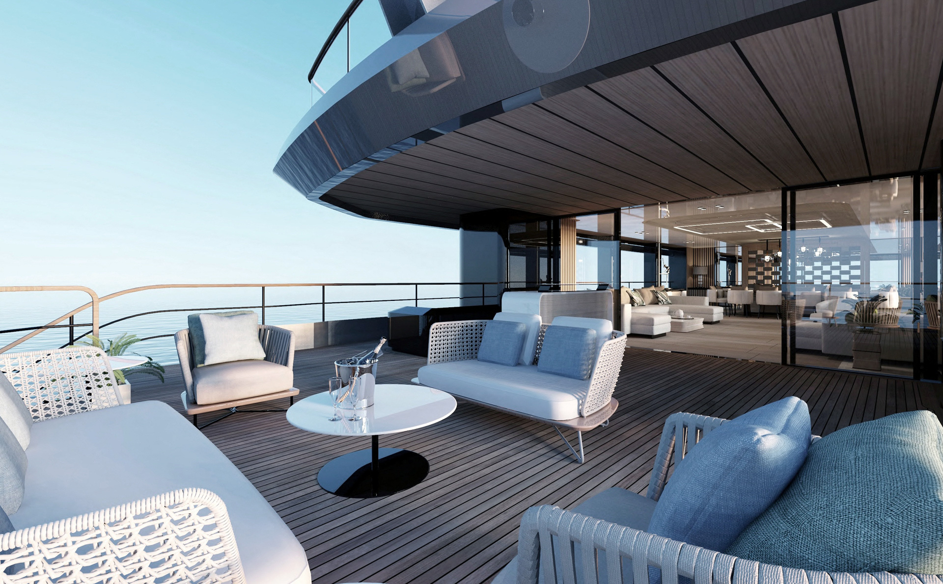 Her interior spaces are generous, light-filled, and meticulously crafted, with premium finishes and thoughtful detailing throughout. The yacht accommodates 12 guests in six beautifully designed cabins, providing privacy and comfort for all onboard. The full-beam owner’s suite is complemented by multiple guest cabins, ensuring a luxurious and spacious living experience. A variety of indoor and outdoor social areas — including lounges, dining zones, and panoramic observation points — provide versatile spaces for relaxation and entertainment.