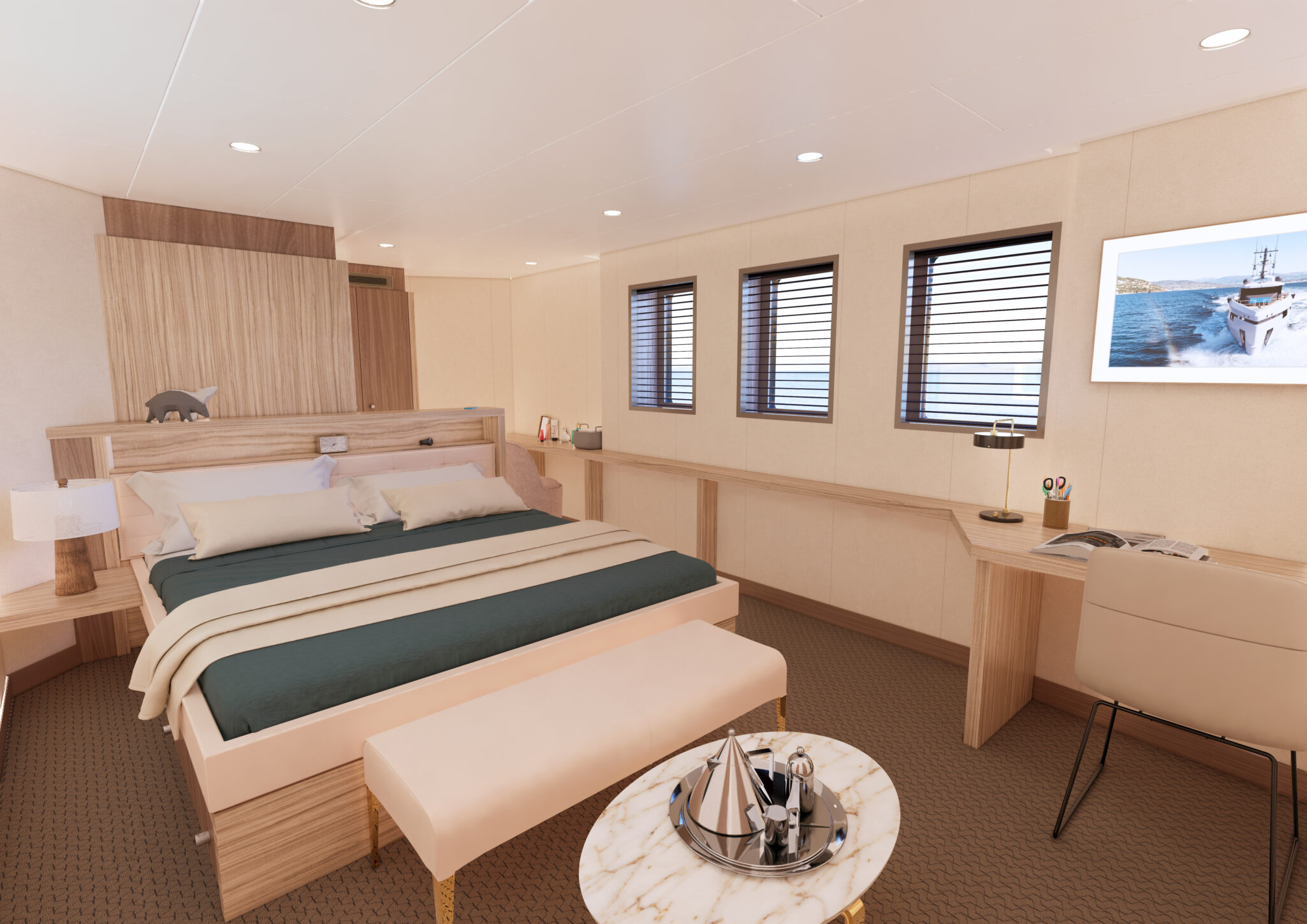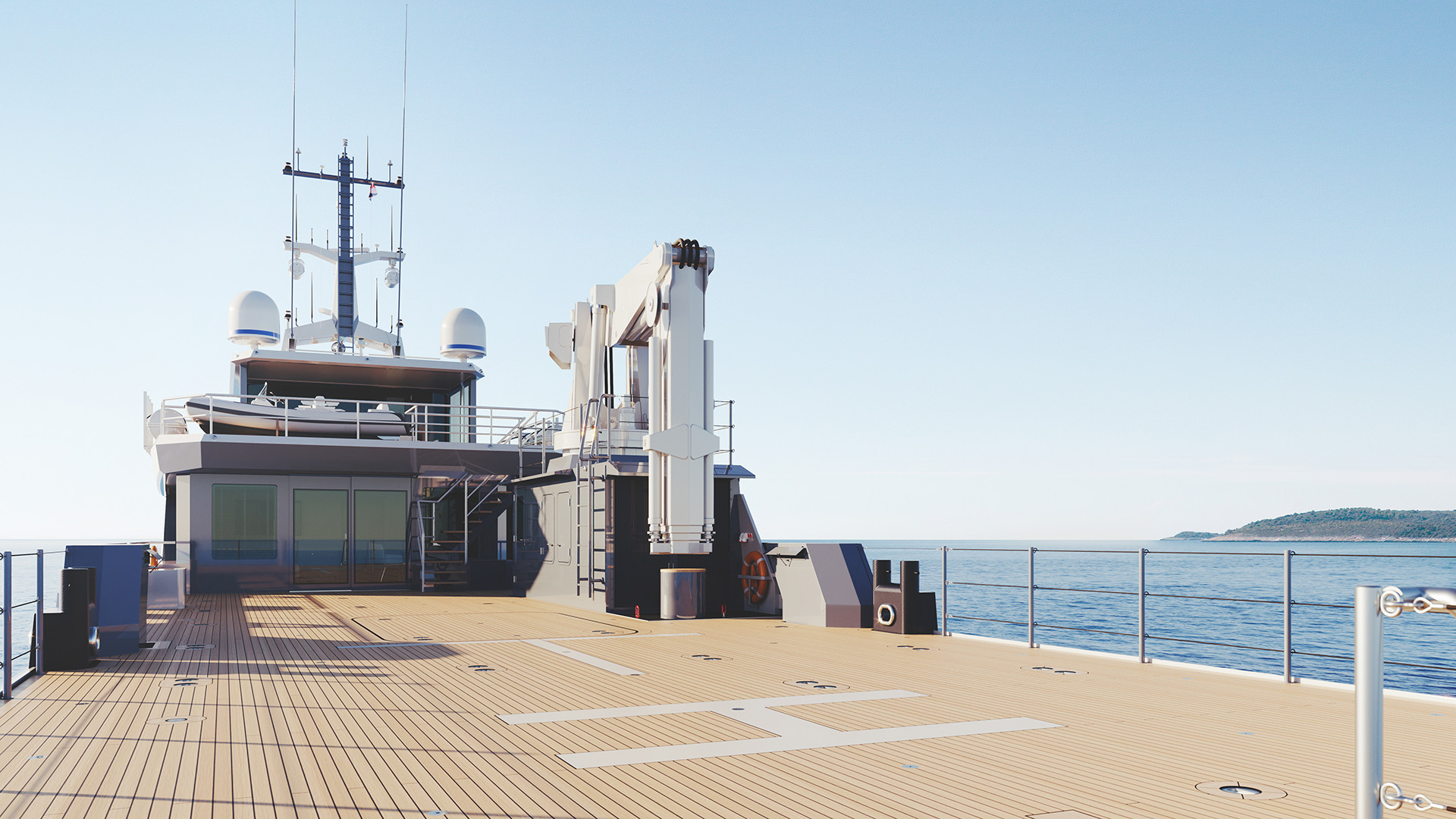 Yet she is far from utilitarian alone. Damen Yachting has elevated her with discreet touches of refinement—durable yet stylish materials, ergonomic layouts, and spacious crew accommodations that ensure comfort during long voyages. Her helideck and expansive cargo deck allow for operations typically reserved for much larger vessels, offering freedom and flexibility without compromise.
