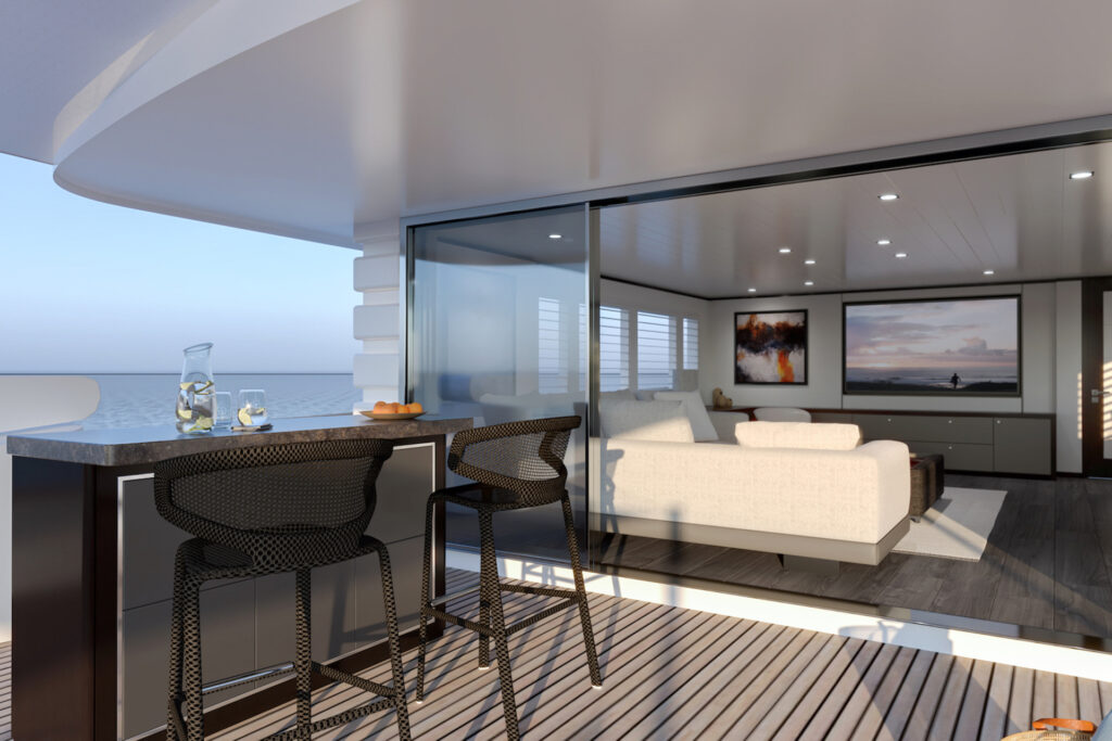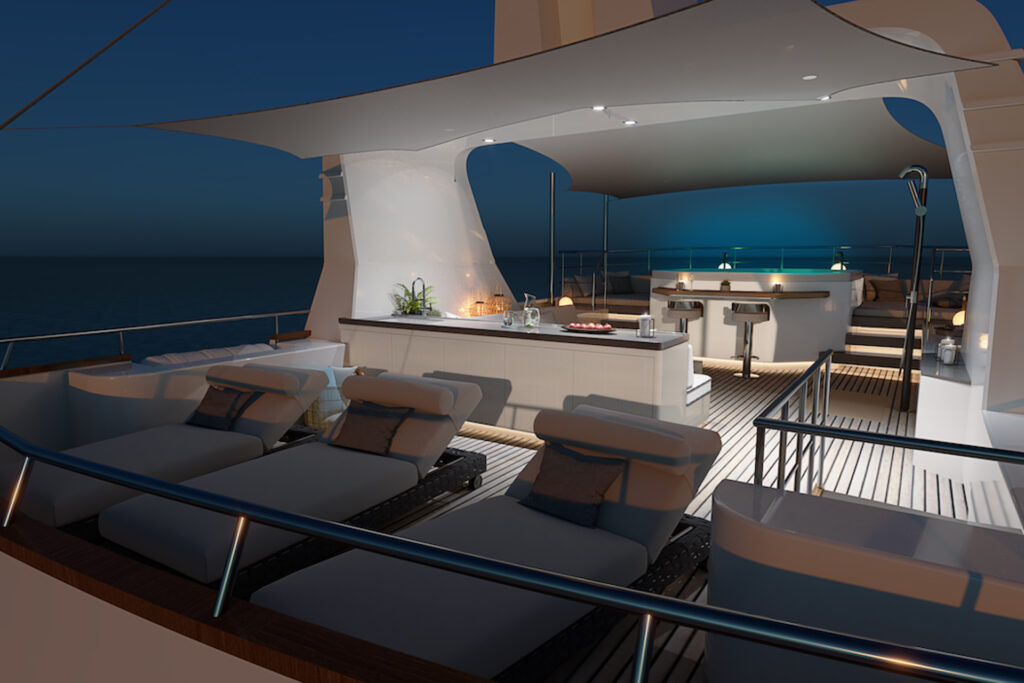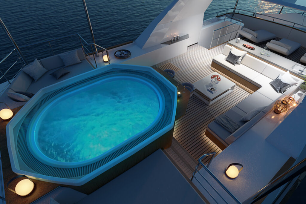– Hull extension to create one of the largest aft main deck spaces in her category