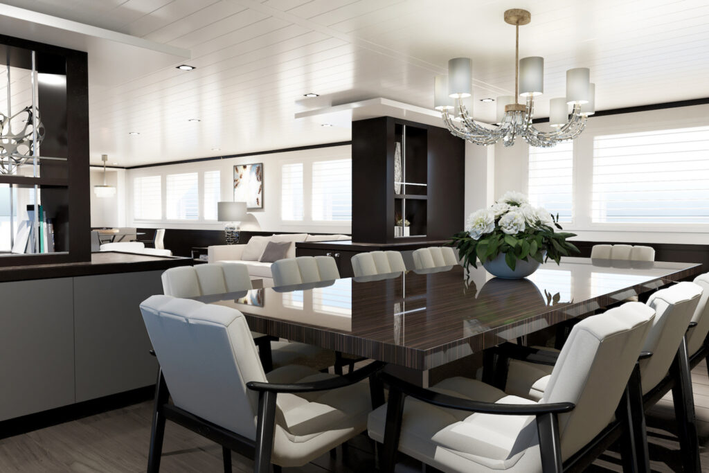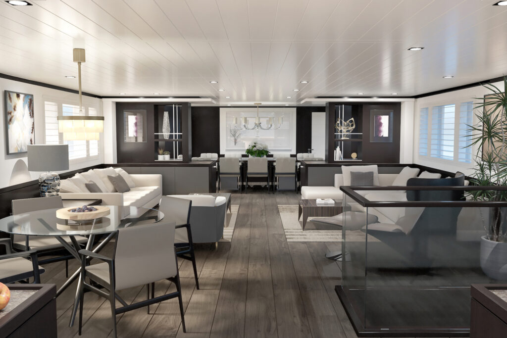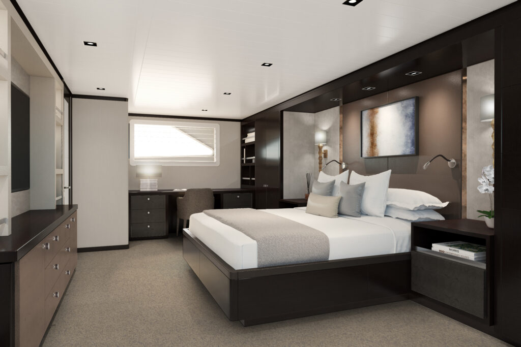 The interior layout has also been modified to allow for accommodation of up to 12 guests in 6 staterooms, including 2 spacious main deck staterooms of similar standing and 4 lower-deck staterooms, consisting of two doubles and two twins that can also convert to doubles when required.