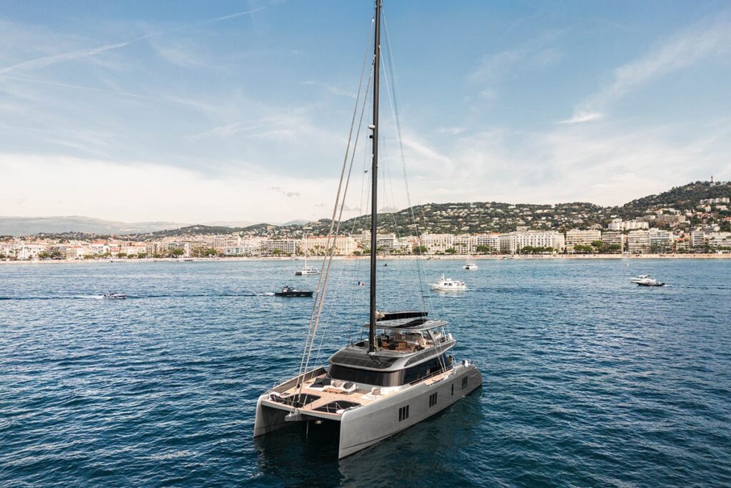 Delivered in 2023, APOLLO 99 is a Sunreef 80 ECO sailing catamaran that blends sustainable innovation with refined luxury. Built in composite by Sunreef Yachts and designed by BALO Design,