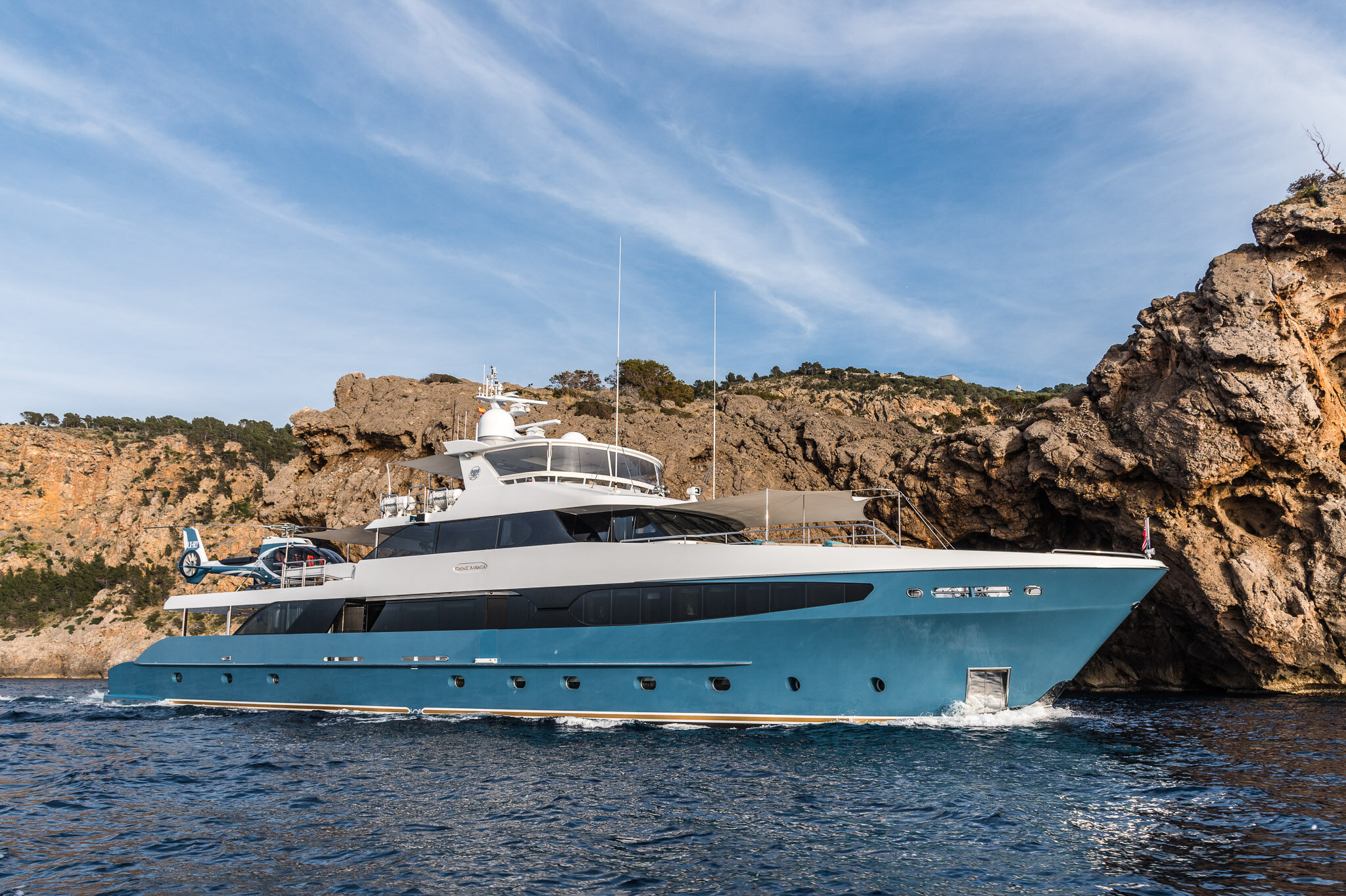 The 42.6m explorer yacht FLYING MANTA is one of the smallest yachts that can facilitate heli-operations. Designed for exploration, FLYING MANTA is incredibly versatile and perfect for keen anglers and divers. She has dedicated space to hang a rod and one of her highlights is a fresh oyster and lobster tanks with a barbeque grill, to cook up the catch of the day.