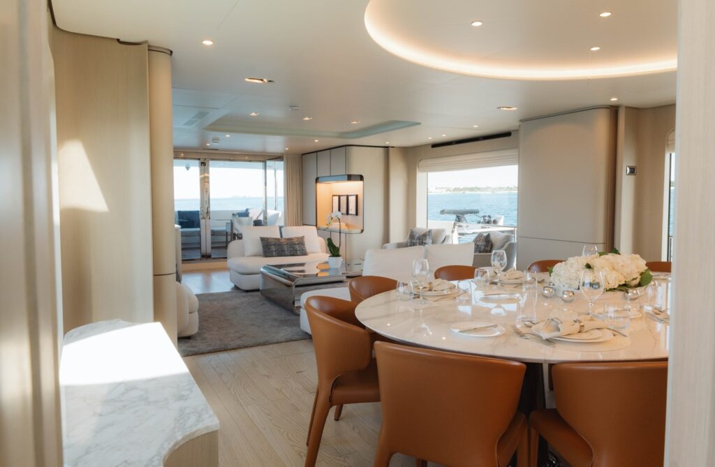Her interiors by Achille Salvagni combine contemporary elegance with practicality, complemented by generous deck spaces including a flybridge with retractable sunroof, Jacuzzi, and bar, plus a beach club with floating dock. Accommodation is for 10 guests in five staterooms, with the gym convertible to a sixth cabin, alongside crew quarters for five. Presented turn-key and fully equipped, CARPE DIEM represents a rare chance to own a near-new Azimut Grande 32 Metri without the wait of a new build.