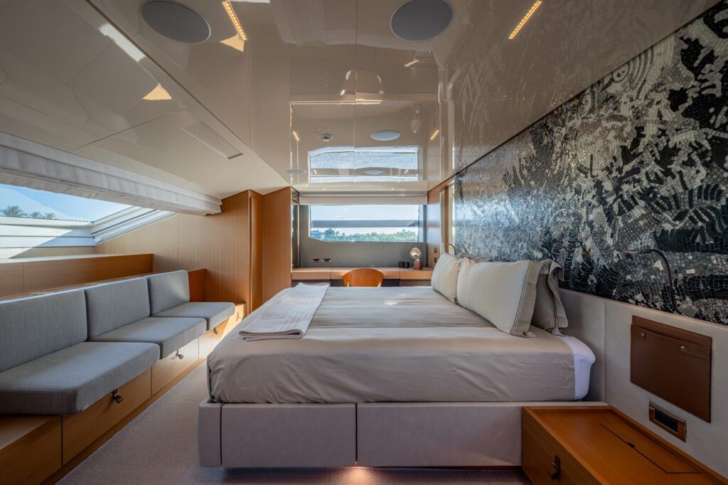 Launched in 2023, SOFI VI is a pristine Sanlorenzo SL120 Asymmetric designed by Zuccon with interiors by Marty Lowe. Her innovative asymmetric layout enhances volume and natural light, creating seamless flow between indoor and outdoor spaces. The main salon opens to fold-down terraces, while the aft beach club and large swim platform offer a true waterside lounge. Accommodating 10 guests in five staterooms, including an on-deck master suite with panoramic views, two VIPs, and two twins, she is supported by crew quarters for seven.