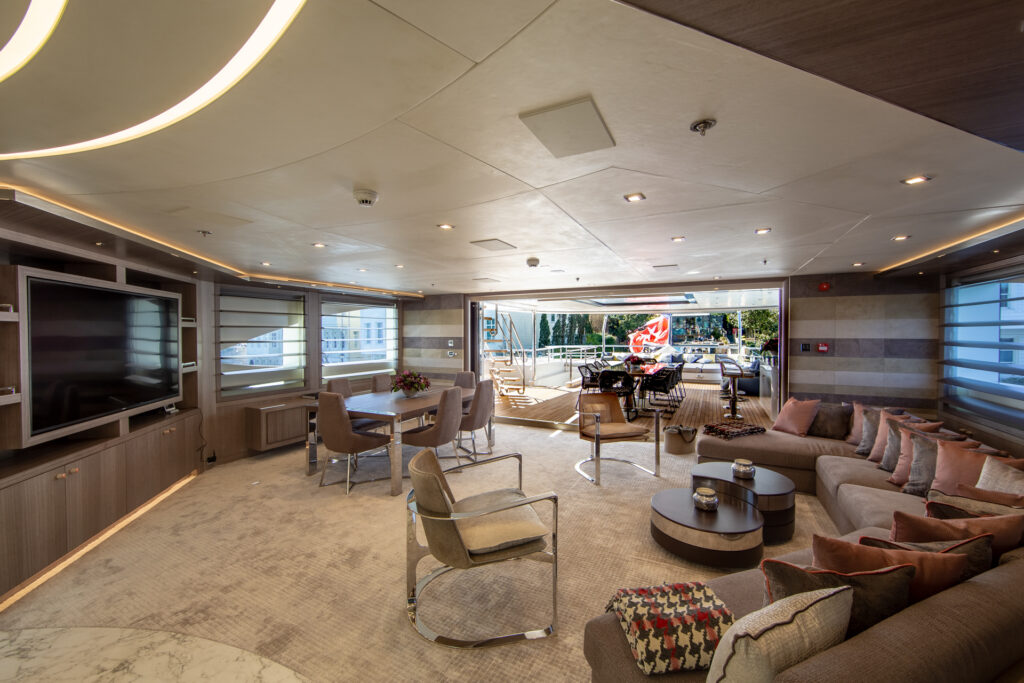 The 47.50m (156’) motor yacht STARBURST III was launched in 2017 by Bilgin Yachts and refitted to an exceptional standard in 2019. This luxury yacht’s sophisticated exterior design and engineering are the work of Unique Yacht Design and her stunning interior is designed by the renowned H2 Yacht Design.Â