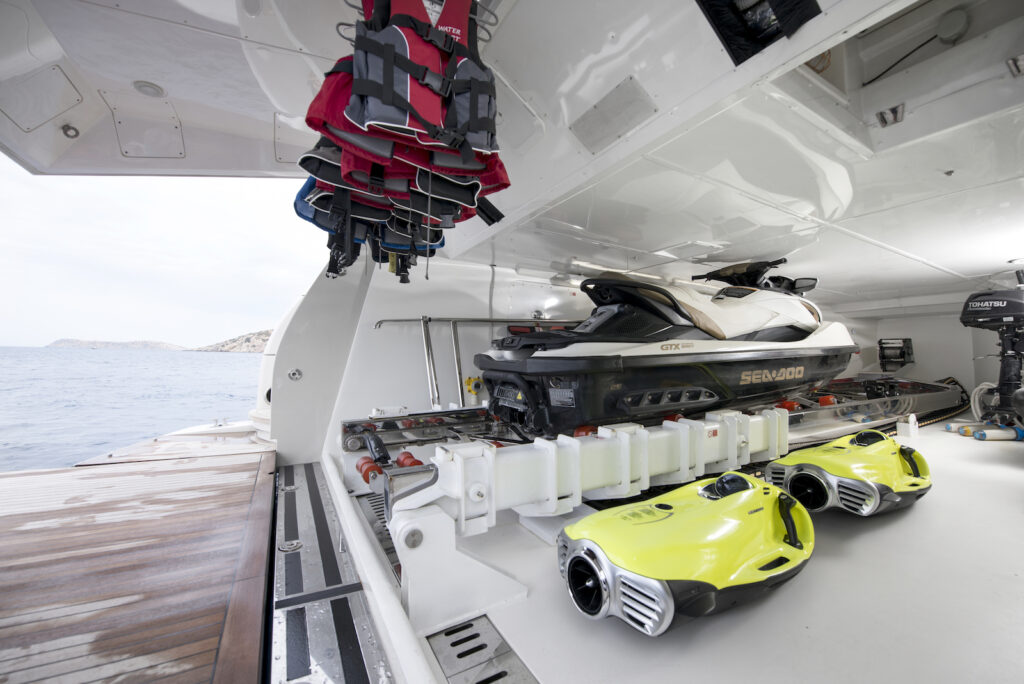 For the adventurous, thrill-seeking guests, the yacht carries a large selection of water sports toys, including a jet-ski and Seabobs. THERAPY also features an extensive sundeck with a large jacuzzi and bar, perhaps the best spot for those who prefer a more relaxed charter experience!