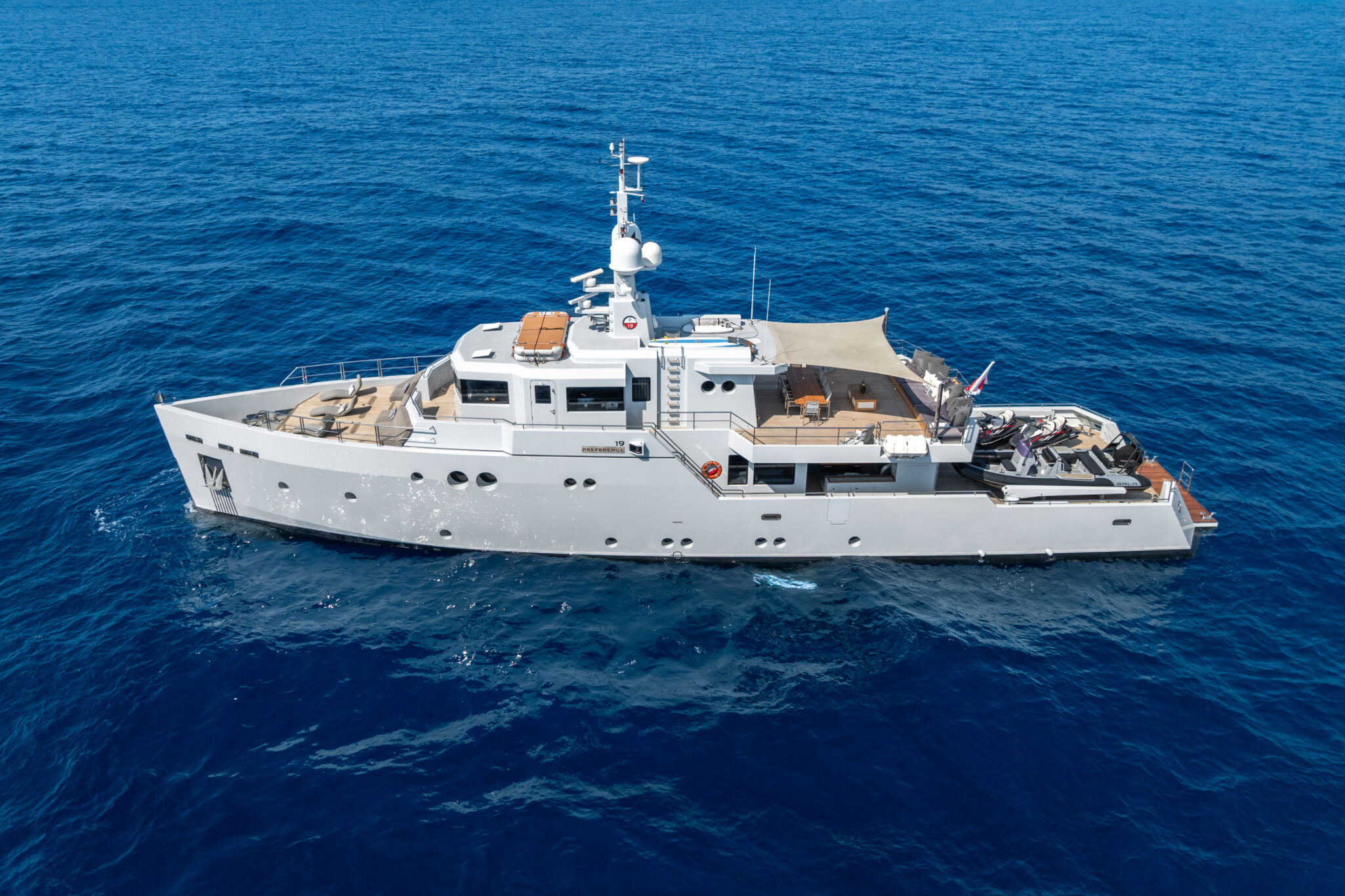 PREFERENCE 19 is a striking 36.4m Tansu, newly available and expertly managed by TWW Yachts since 2019. Her award-winning exterior, defined by bold, angular lines, reflects Tansu’s pioneering utilitarian aesthetic, which is now widely emulated in modern yacht design.