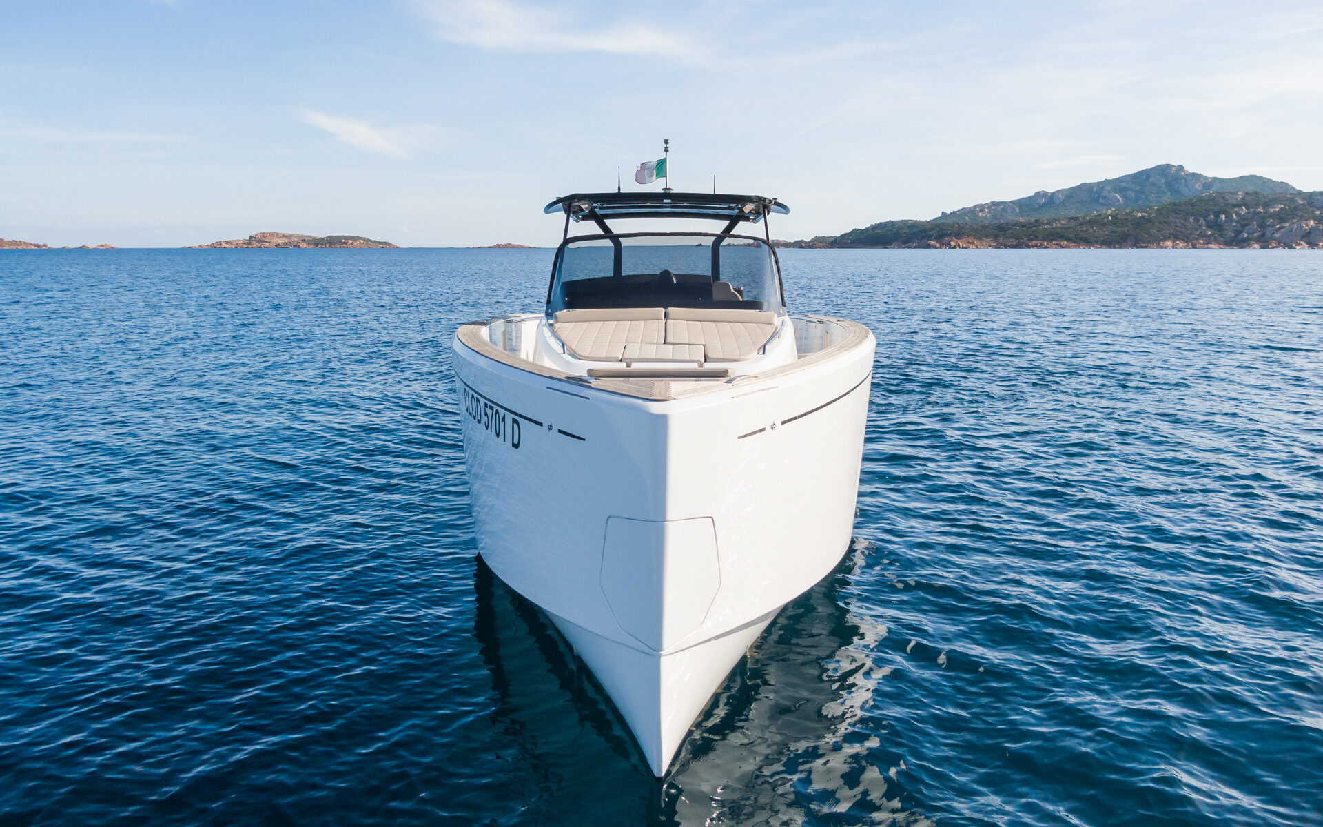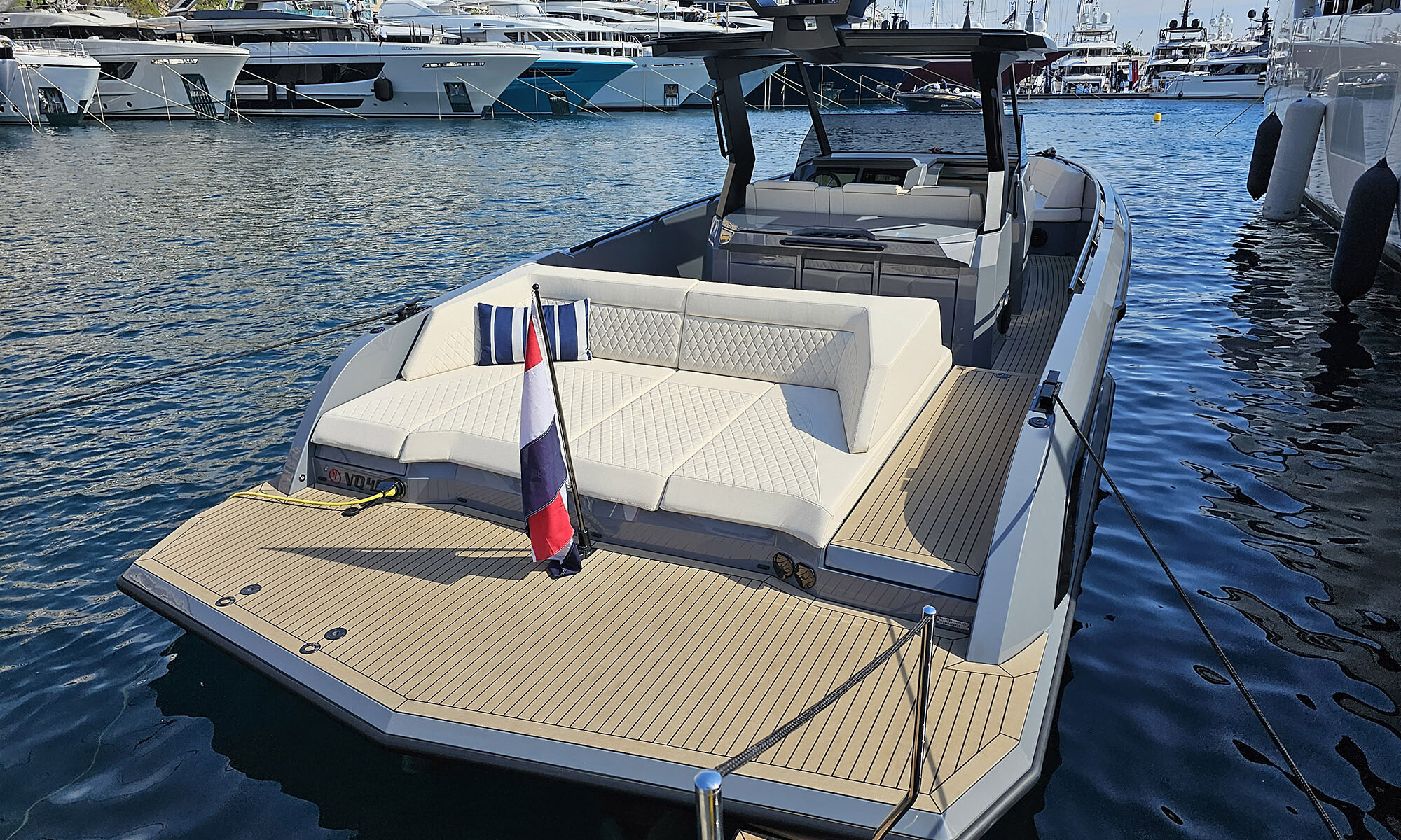 Her design incorporates a seamless connection with the sea and is intended for peaceful, fluid cruising. The “infinity cockpit,” which is completely open, provides a stunning view of the ocean and simple access to the salon via a sizable motorized sliding glass door.