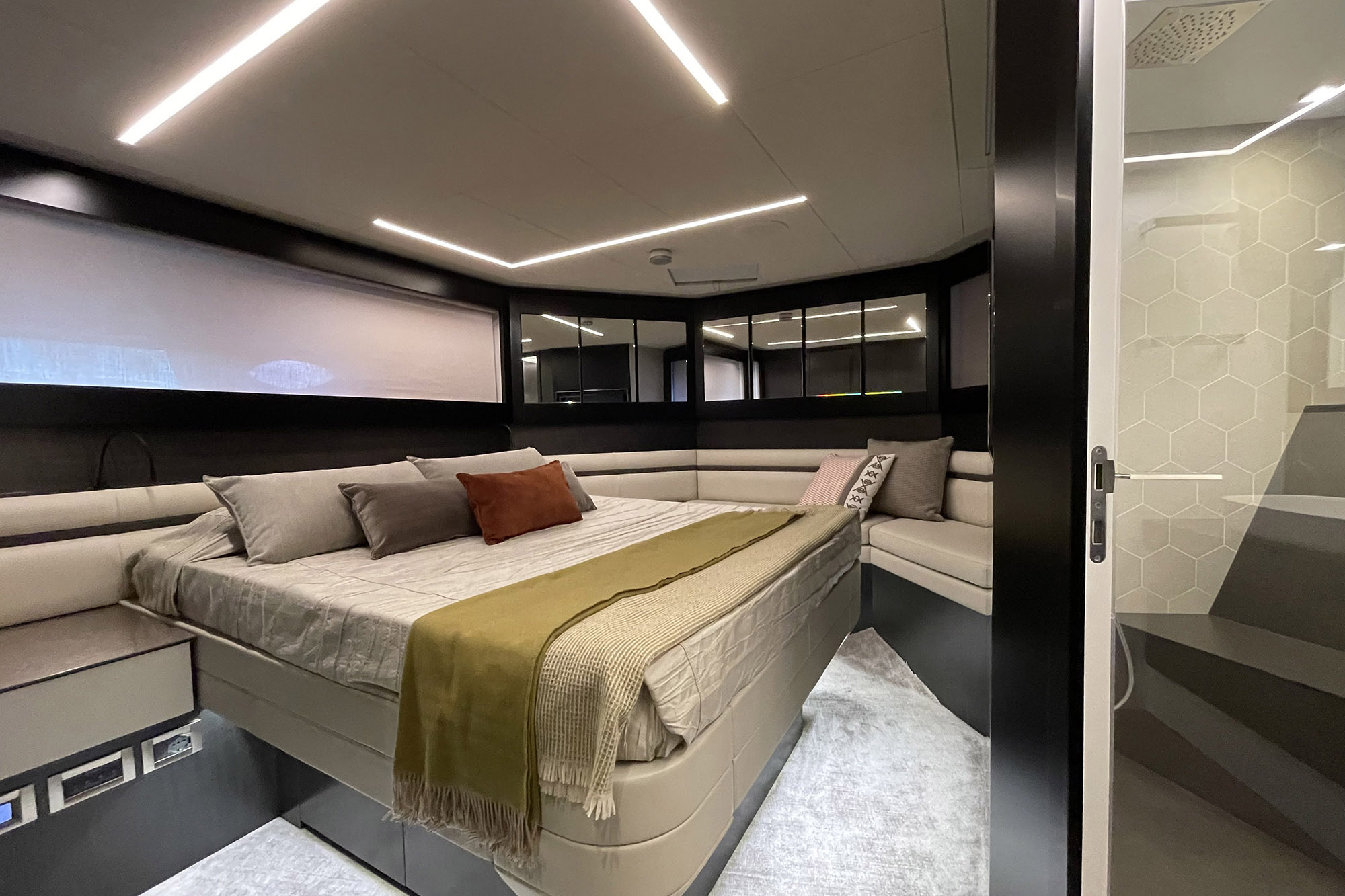 The Pershing 8x is the yard’s lightweight, fast and high-performance carbon fibre superyacht model. Featuring a new propulsion system, her sharp, sporty exterior lines boost iconic design elements, such as sleek side wings. Able to reach speeds of up to 48 knots, her groundbreaking system integrates propulsion control with high-speed manoeuvring and navigation. Her main deck features an unrivalled blend of quality and innovation, with access on both sides. Her customisable layout configurations ensure her owners can make the best used of her extensive volume, while her interiors can be refined to reflect her owners taste.Â