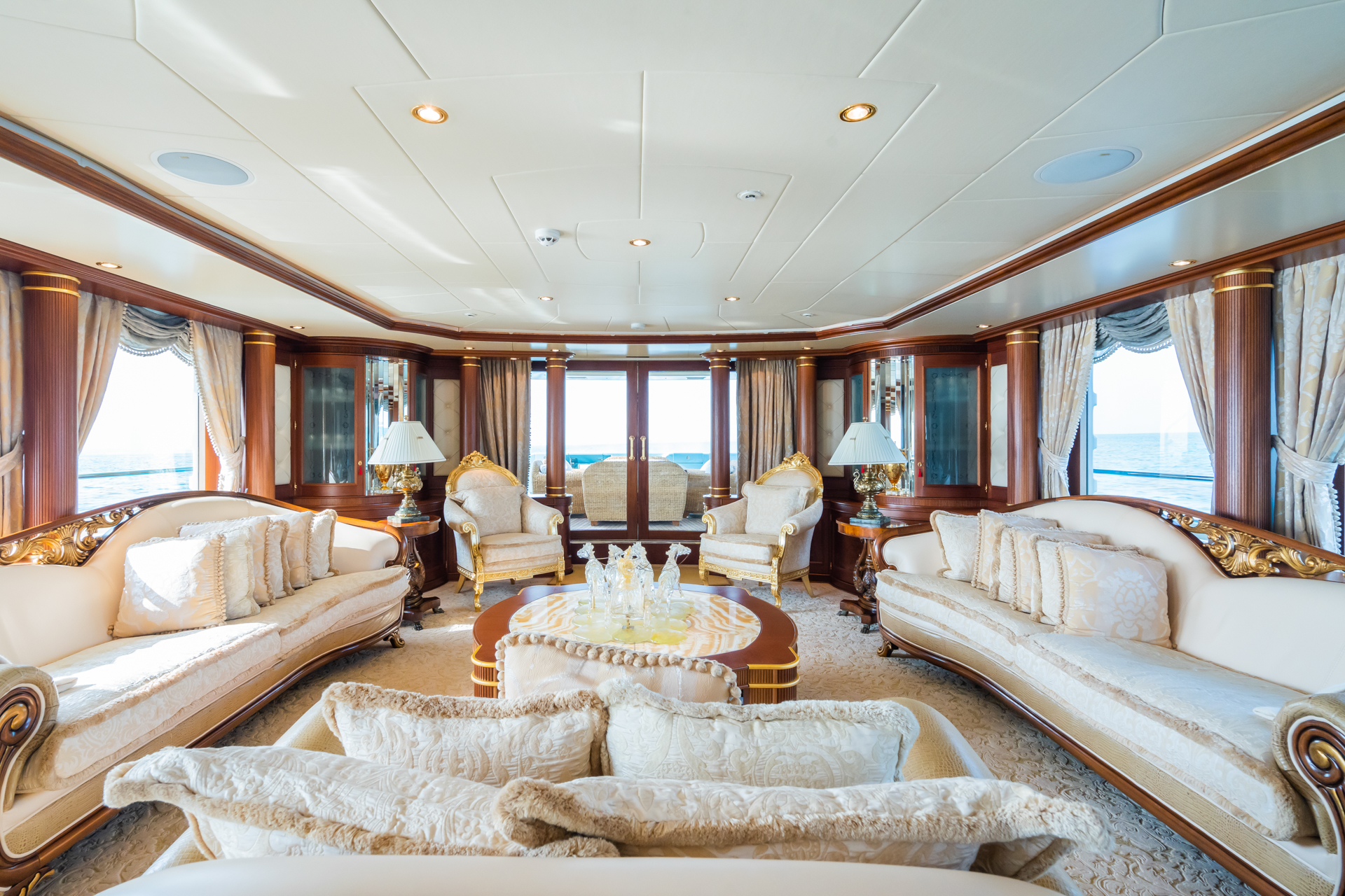 Her elegant interiors were designed by renowned designer Cristiano Gatto designed The handcrafted interiors are a testament to the meticulous attention to detail, featuring precious materials such as onyx, Sicis micro-mosaic, and custom silk carpets.
