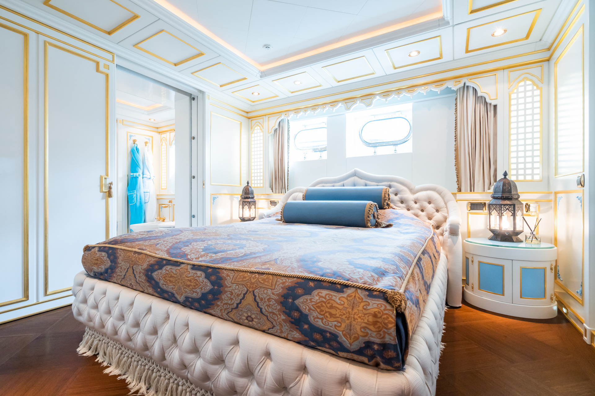 AQUAMARINA boasts two master cabins with the main deck cabin showcasing contemporary design, while the cabin on the bridge deck offers an indulgent experience with its amazing terrace.