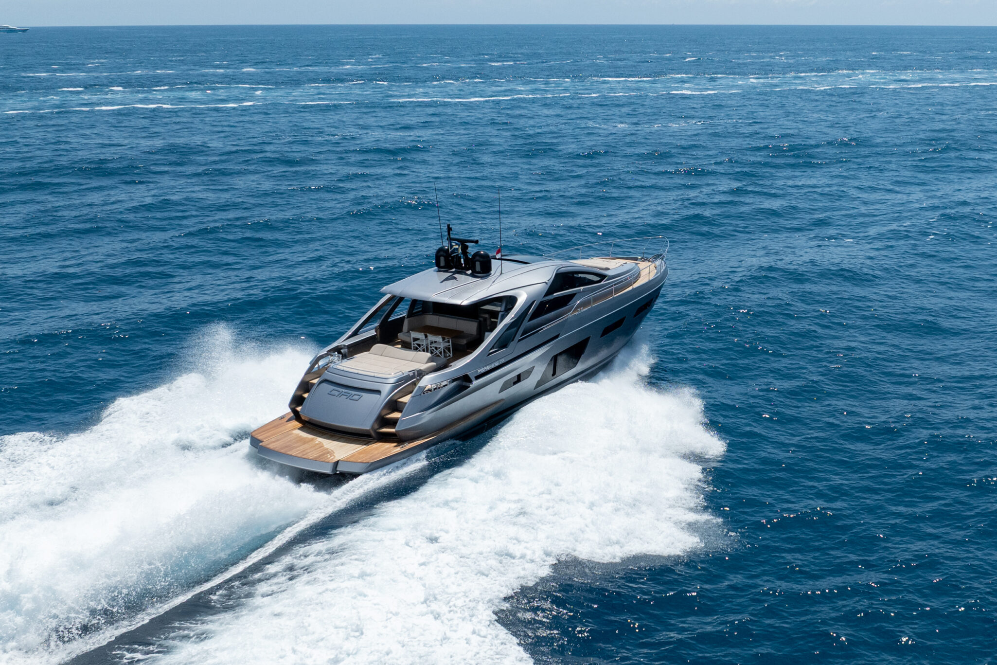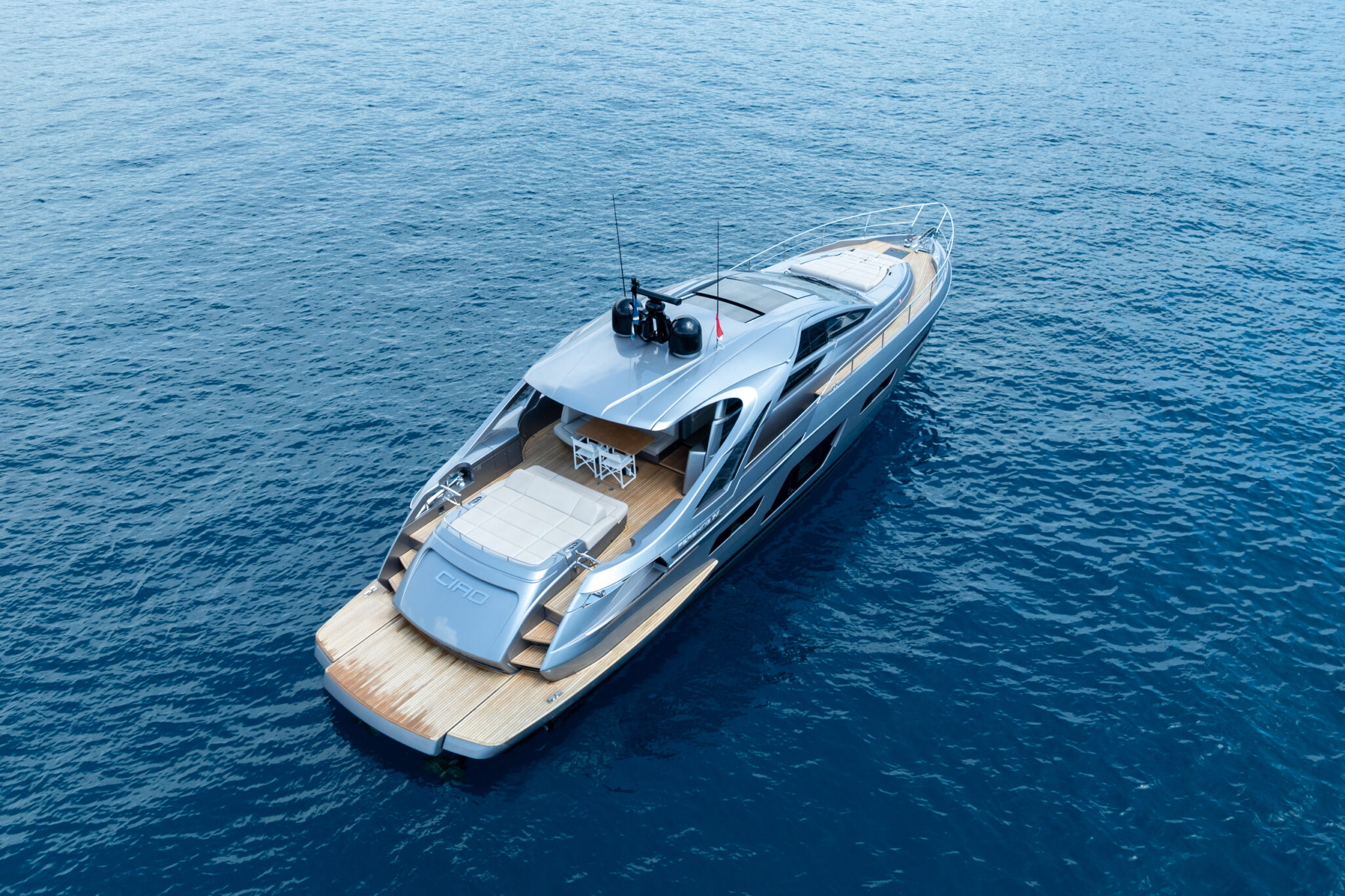 Designed by Fulvio De Simoni and reaching a top speed of 50 knots, CIAO is perfect combination of performance, style and comfort. Her sleek interior accommodates 6 guests across 3 cabins; 1 master, 1 VIP and 1 twin.