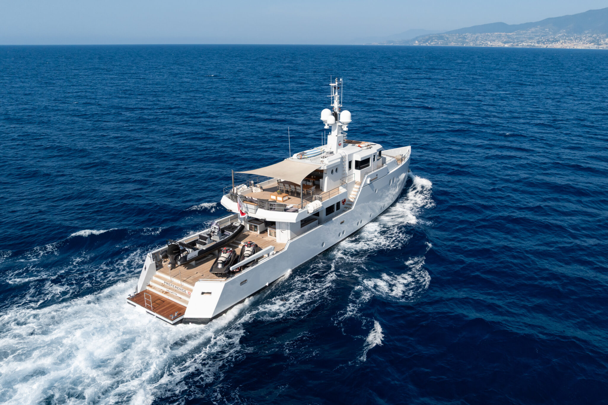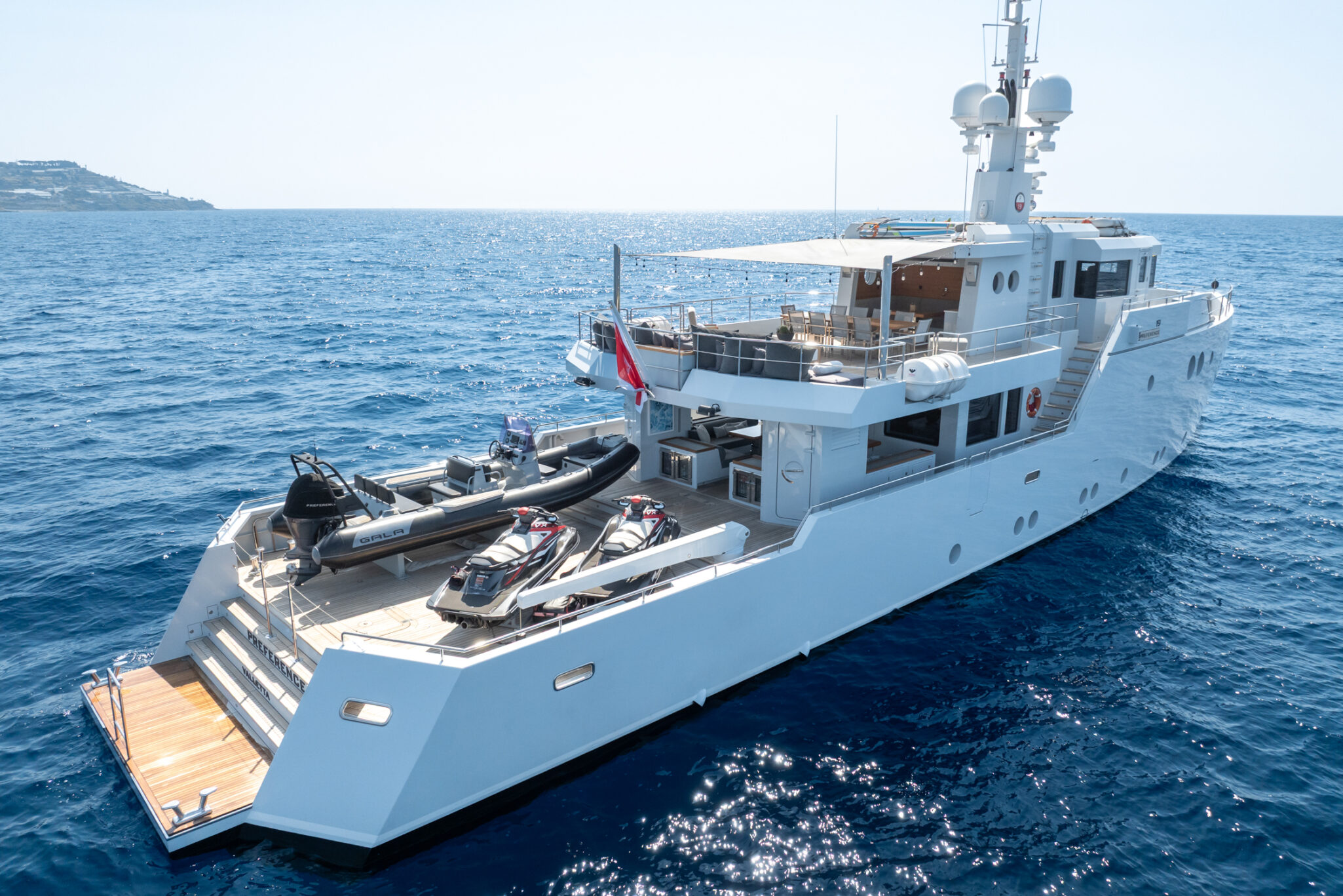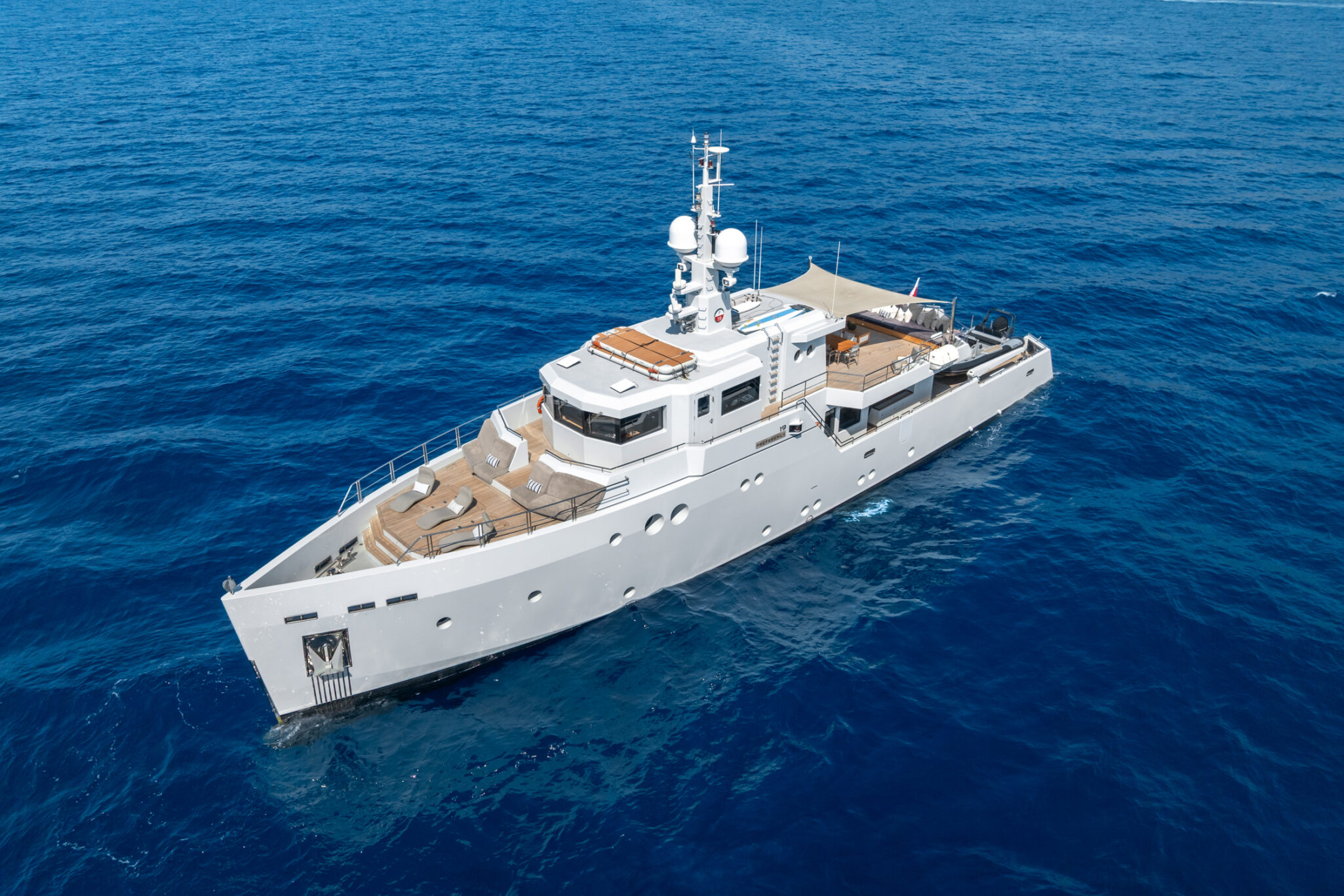 Delivered in 2011, PREFERENCE 19 has an award-winning contemporary design with strong, angular exterior lines and a fresh, loft style interior. The spacious aft deck takes this explorer-style yacht to the next level; the perfect spot to launch tenders and toys, exercise or bask in the sun.