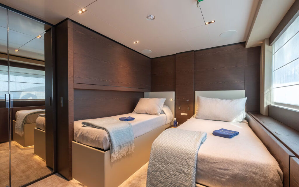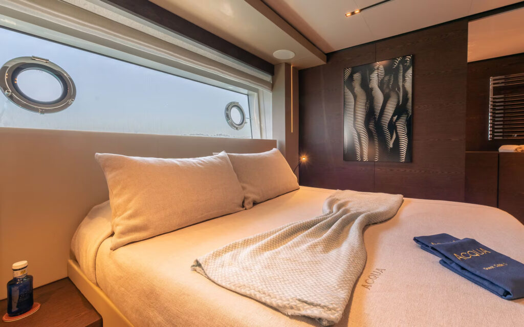 The spacious cabins are havens of tranquility, featuring plush bedding and panoramic windows that frame the mesmerizing seascapes.Â