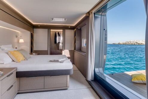The spacious cabins are havens of tranquility, featuring plush bedding and panoramic windows that frame the mesmerizing seascapes.Â