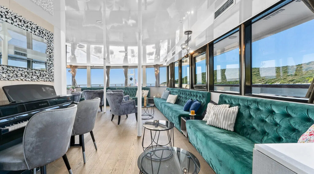 Welcome aboard to an unparalleled journey of luxury and sophistication. The yacht’s interior is meticulously designed to offer the ultimate in comfort and elegance.Â