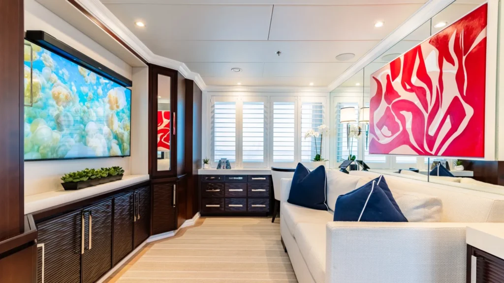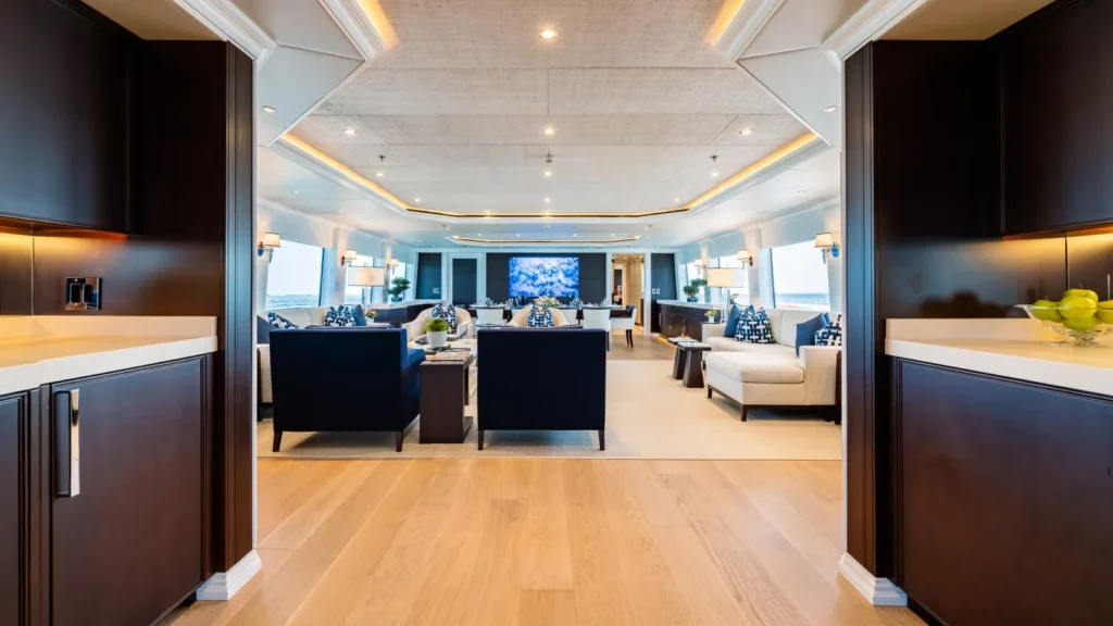 Welcome aboard to an unparalleled journey of luxury and sophistication. The yacht’s interior is meticulously designed to offer the ultimate in comfort and elegance.Â