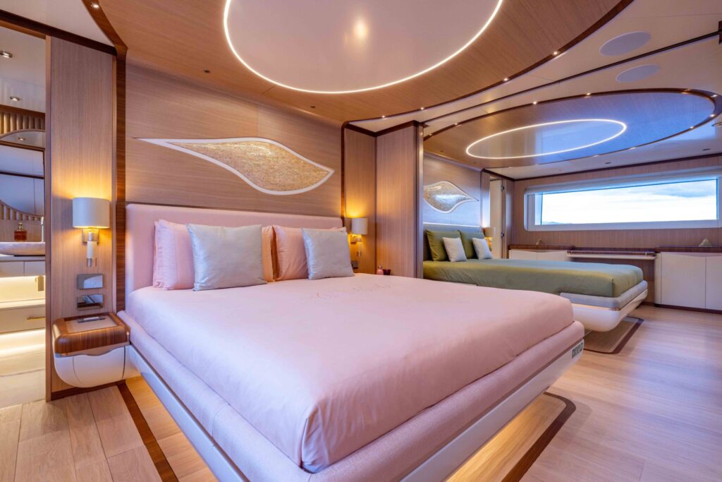 The spacious cabins are havens of tranquility, featuring plush bedding and panoramic windows that frame the mesmerizing seascapes.Â