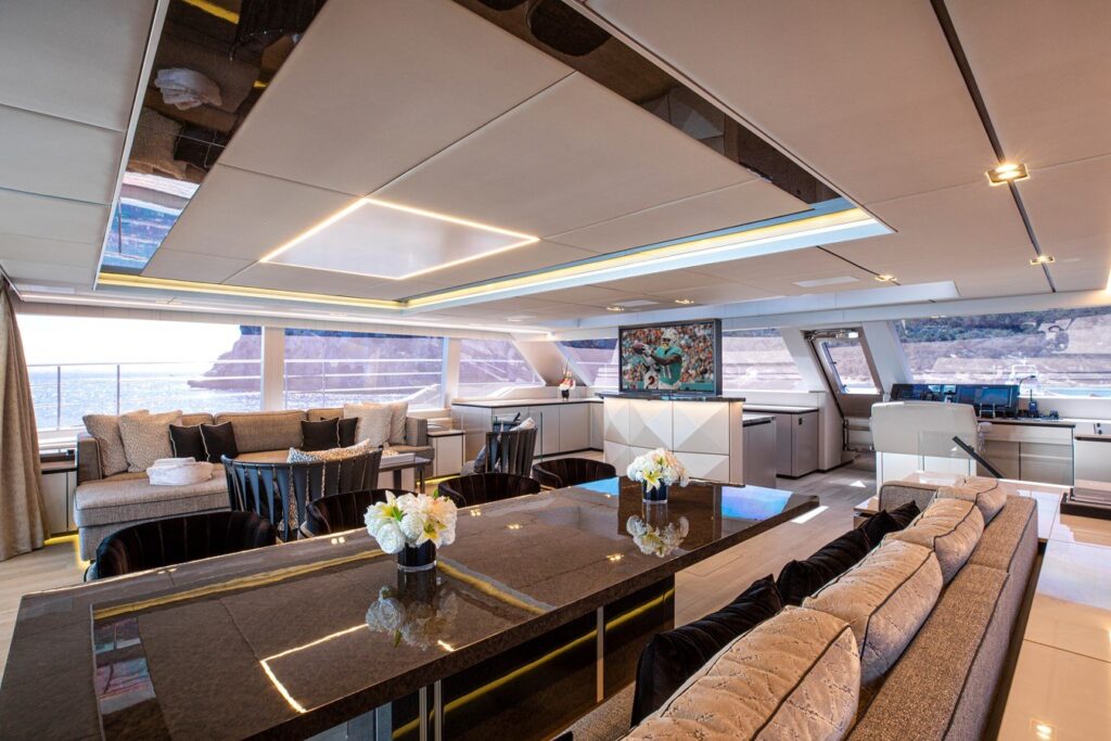 Welcome aboard to an unparalleled journey of luxury and sophistication. The yacht’s interior is meticulously designed to offer the ultimate in comfort and elegance.Â