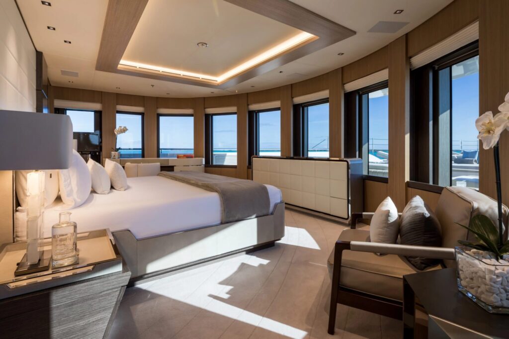 The spacious cabins are havens of tranquility, featuring plush bedding and panoramic windows that frame the mesmerizing seascapes.Â