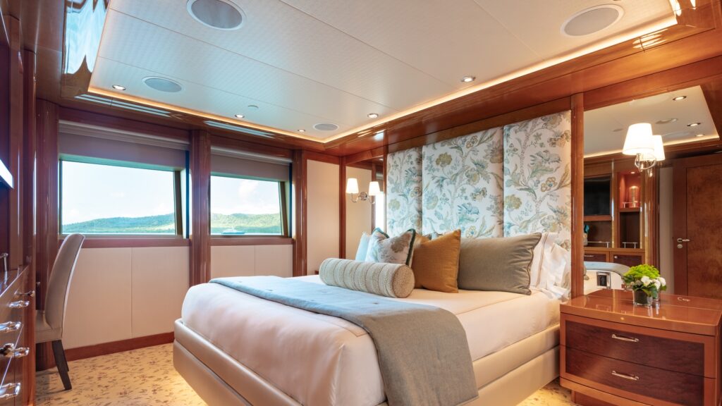 The spacious cabins are havens of tranquility, featuring plush bedding and panoramic windows that frame the mesmerizing seascapes.Â