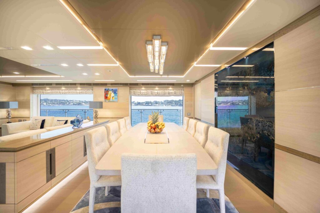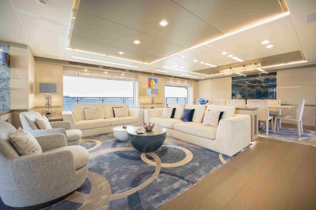 Welcome aboard to an unparalleled journey of luxury and sophistication. The yacht’s interior is meticulously designed to offer the ultimate in comfort and elegance.