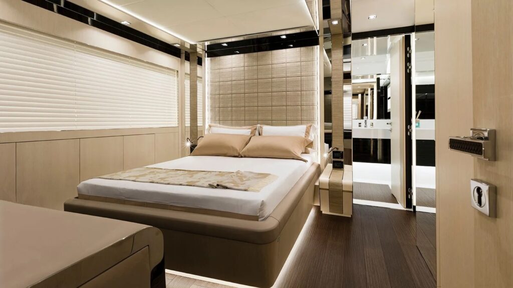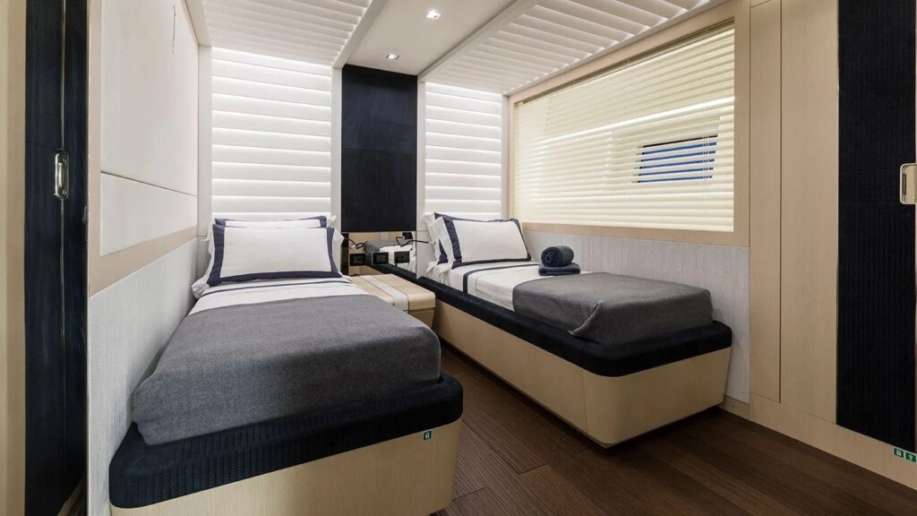 The spacious cabins are havens of tranquility, featuring plush bedding and panoramic windows that frame the mesmerizing seascapes.Â