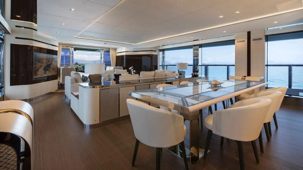 Welcome aboard to an unparalleled journey of luxury and sophistication. The yacht’s interior is meticulously designed to offer the ultimate in comfort and elegance.Â