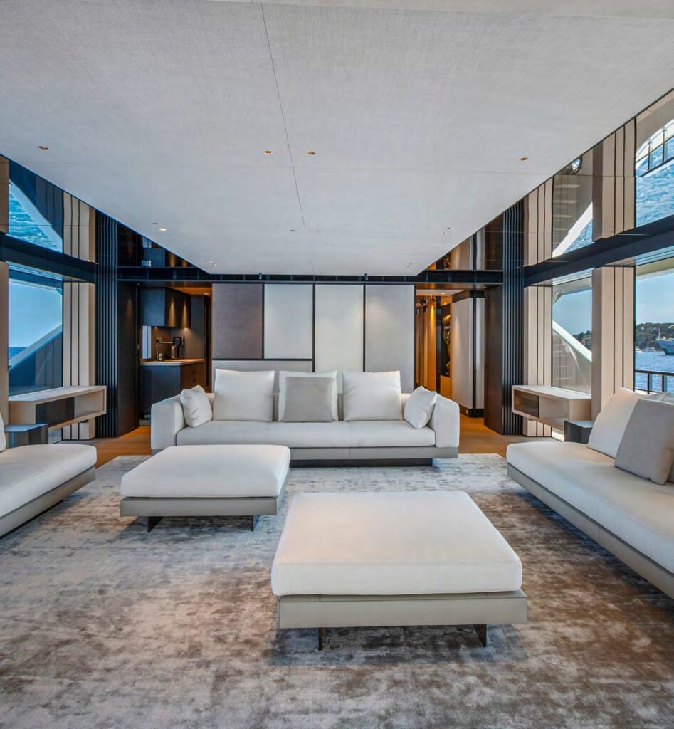 Welcome aboard to an unparalleled journey of luxury and sophistication. The yacht’s interior is meticulously designed to offer the ultimate in comfort and elegance.Â
