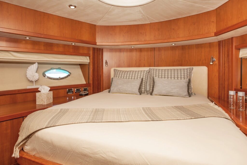 The spacious cabins are havens of tranquility, featuring plush bedding and panoramic windows that frame the mesmerizing seascapes.Â