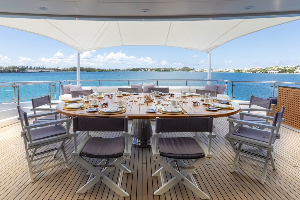 HBCoffers an array of well-designed outdoor spaces for relaxation and entertainment. The sun deck, with its expansive layout, features a Jacuzzi where guests can unwind while enjoying panoramic views. The sun pads and loungers provide ample seating for sunbathing and lounging. Additionally, the bridge deck offers a perfect spot for al fresco dining with comfortable seating arrangements.