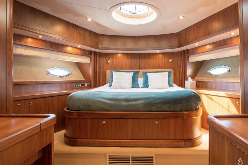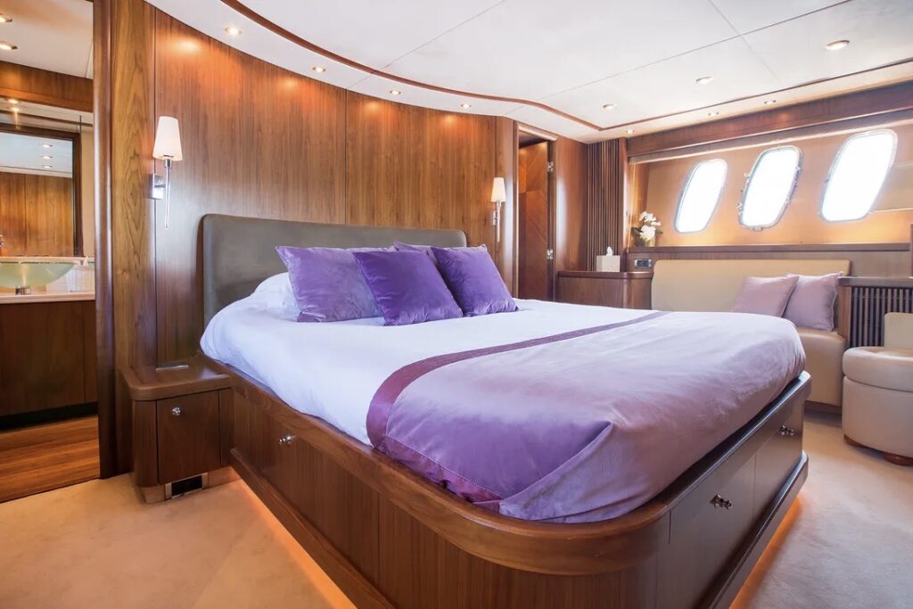 The spacious cabins are havens of tranquility, featuring plush bedding and panoramic windows that frame the mesmerizing seascapes.Â