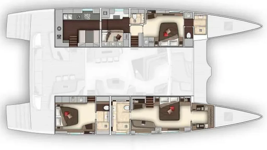 The yacht’s layout is meticulously designed to optimize both comfort and functionality, seamlessly integrating spacious interior and exterior areas. With large open spaces and a fluid flow, guests can effortlessly navigate between the main saloon, expansive outdoor decks, and luxurious accommodations. Each area, from the main saloon serving as the heart of the yacht to the versatile configurations of the master cabin, is crafted with meticulous attention to detail, ensuring an unforgettable experience for all aboard.