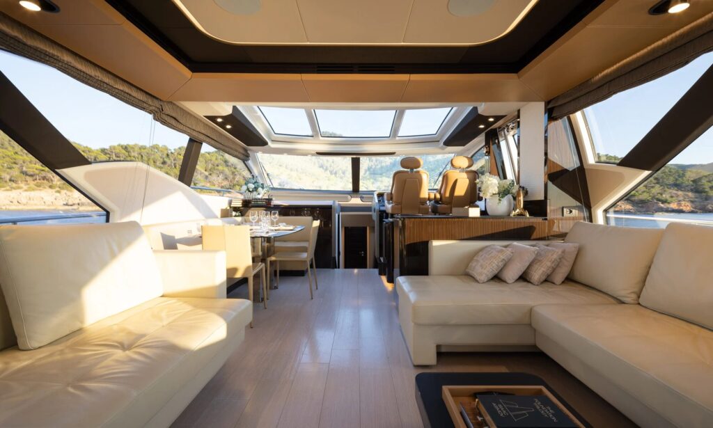 Welcome aboard to an unparalleled journey of luxury and sophistication. The yacht’s interior is meticulously designed to offer the ultimate in comfort and elegance.Â