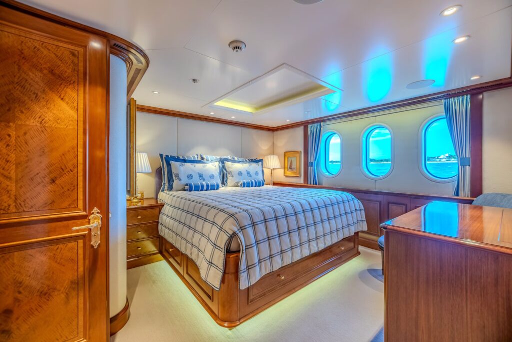 The spacious cabins are havens of tranquility, featuring plush bedding and panoramic windows that frame the mesmerizing seascapes.Â
