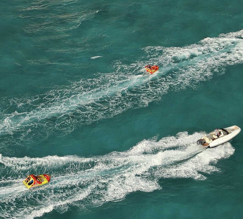 On the exterior, LAZY Z features expansive deck spaces ideal for lounging, dining, and soaking up the sun. Forward on the sundeck is a large glass-encased swimming pool offering unparalleled views. Further back can be found an additional Jacuzzi, full bar, BBQ and ample seating, perfect for enjoying cocktails or spending time with guests. The yacht’s beach club and array of water toys, including two Sea-Doos, paddleboards, and an inflatable fun tube, promise fun and adventure for those seeking excitement on the water.