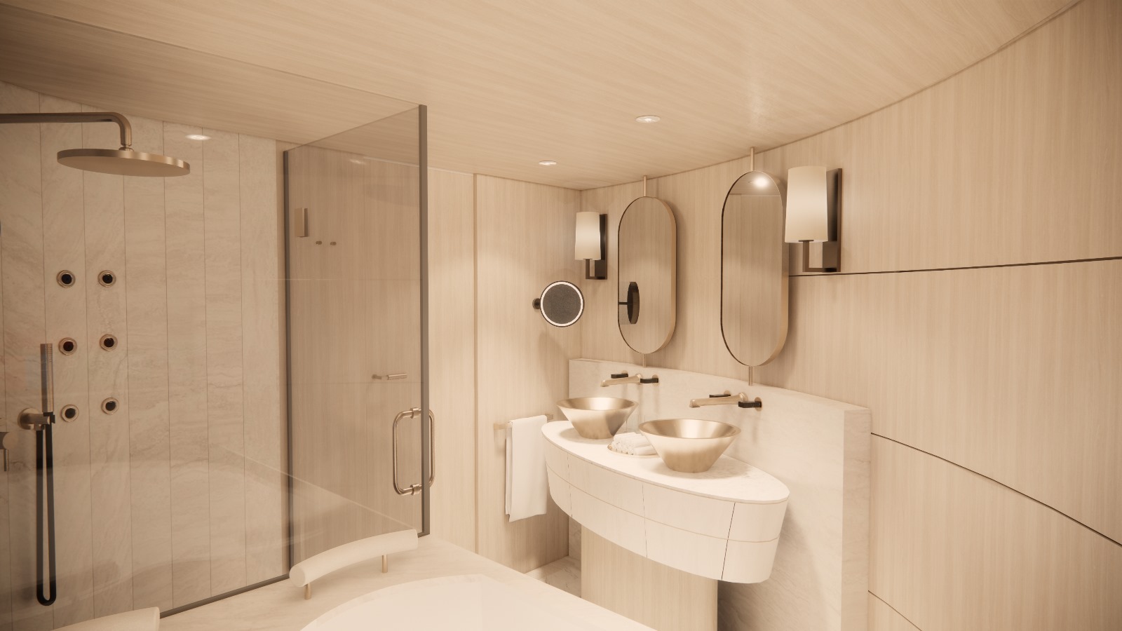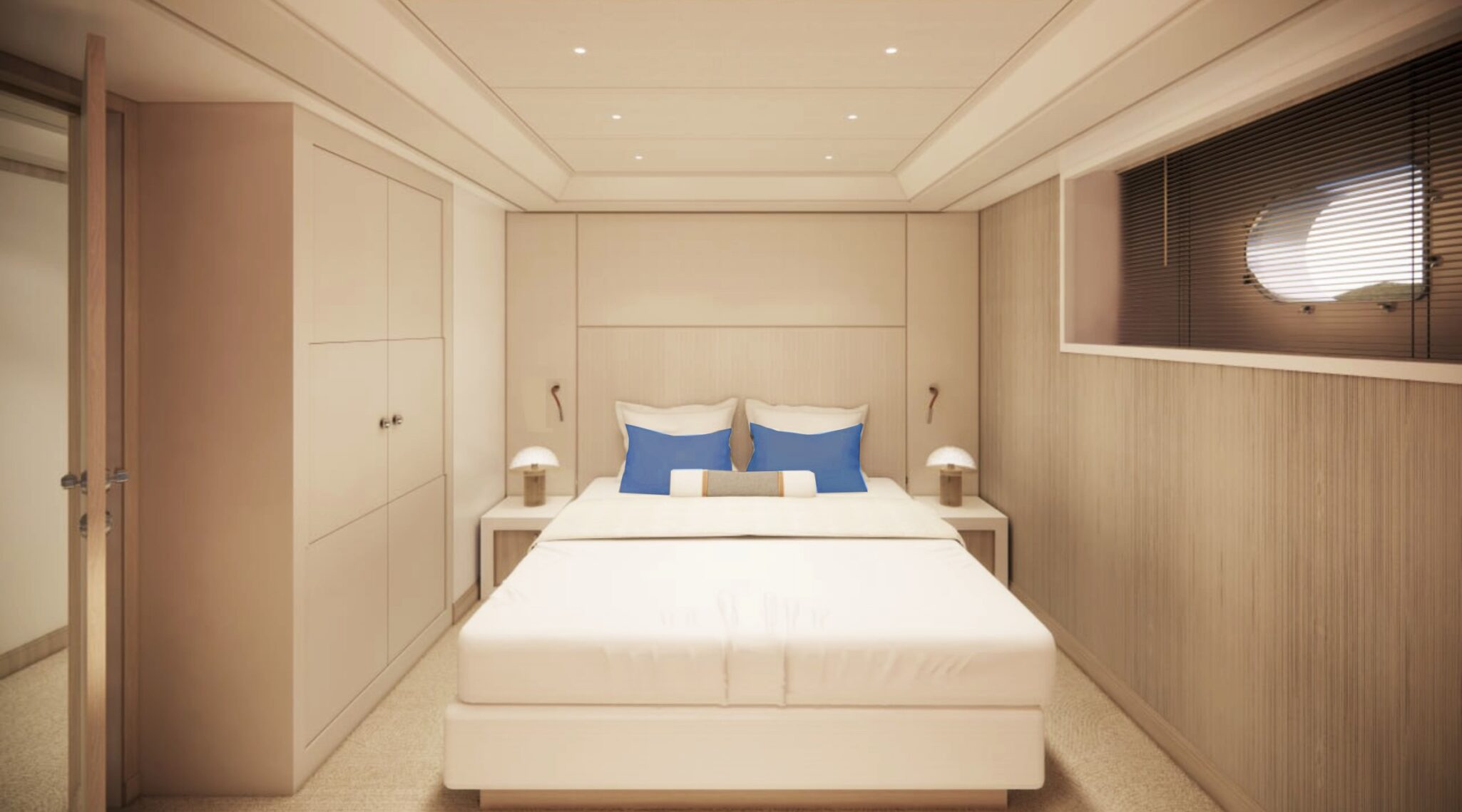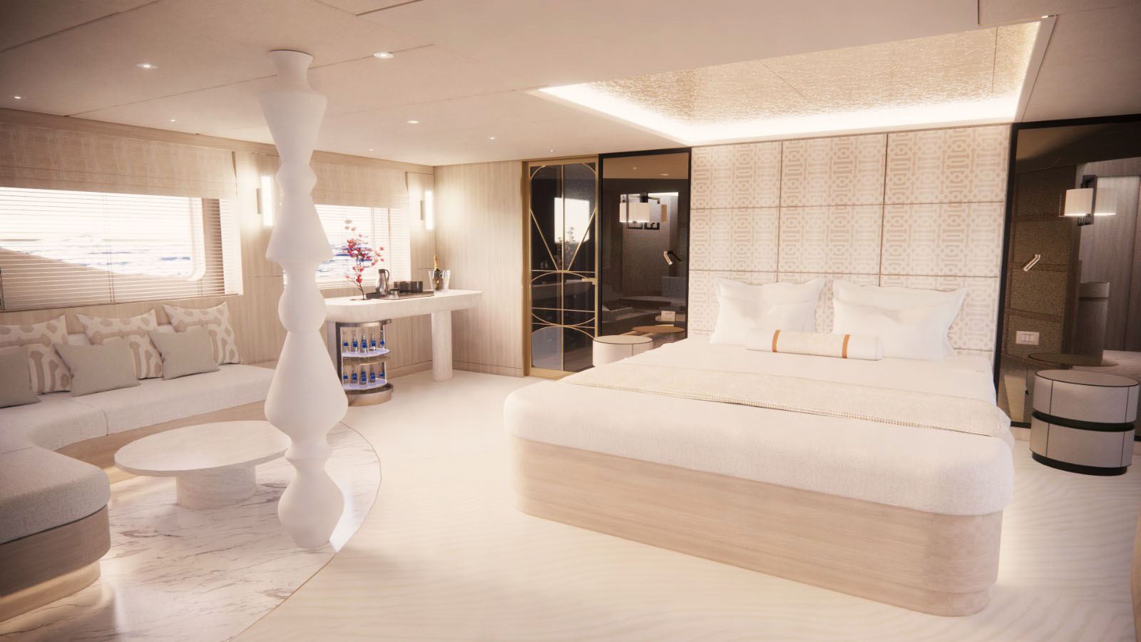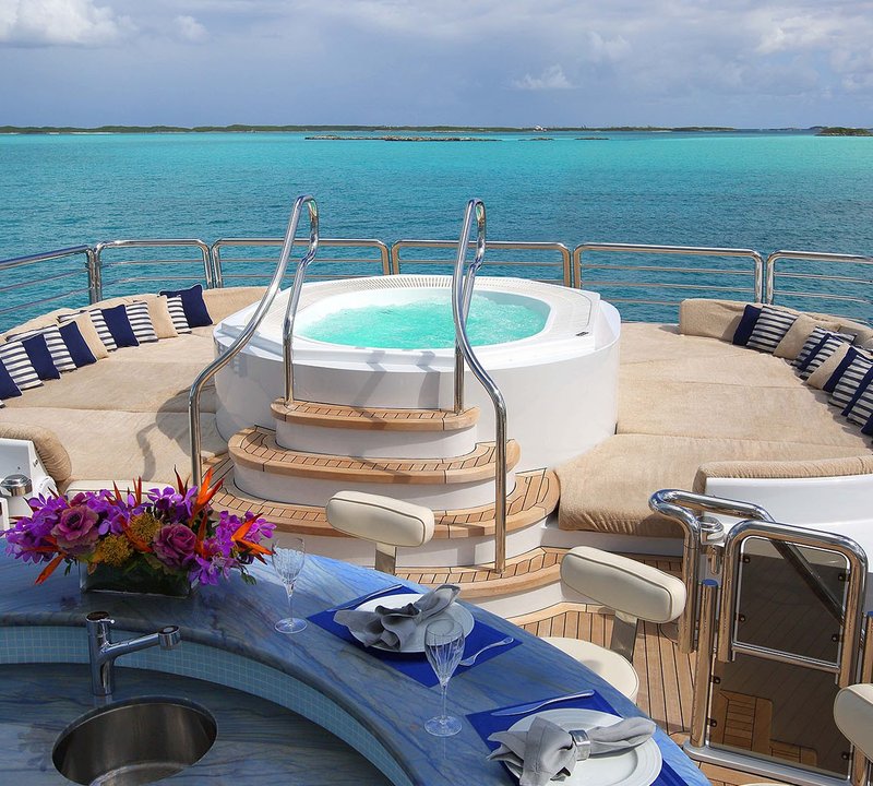 With a contemporary profile and generous outdoor spaces, she commands attention on the water. Her six beautifully appointed staterooms accommodate up to 12 guests, providing a sophisticated setting for relaxation and exploration. The stand out master suite spans two levels; the full-beam stateroom enjoys an extra large king bed, sofa area and is en suite with both a shower and separate steam room. A small stairway leads you up to a private observation lounge. This exclusive owner retreat consists of a whirlpool Jacuzzi, relaxing day bed and bar, and is situated forward with 180 degree panoramic views.