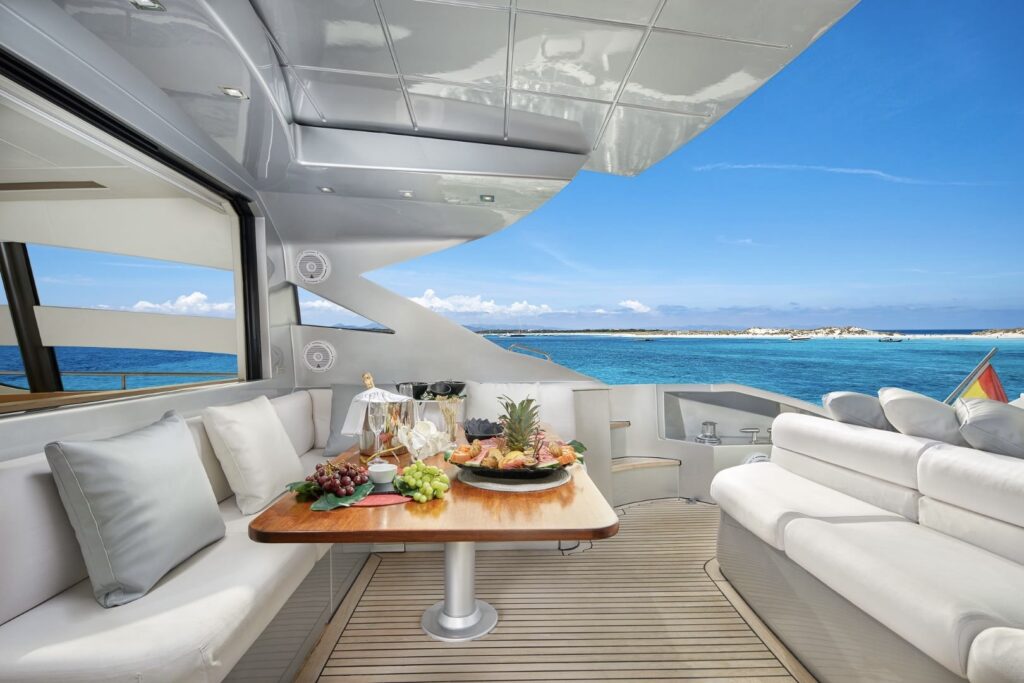 Whether you’re lounging in the sun-drenched salon, enjoying gourmet dining under the stars, or simply reveling in the serenity of the open sea, our yacht provides the perfect setting for an unforgettable escape into the world of maritime luxury.