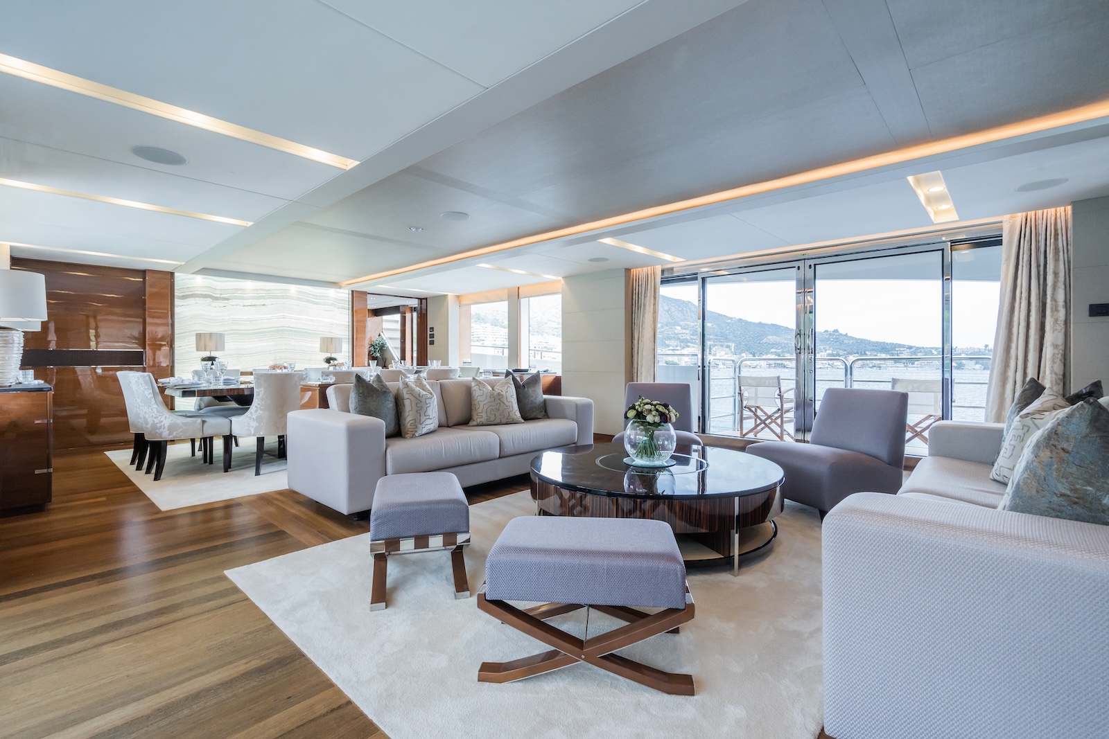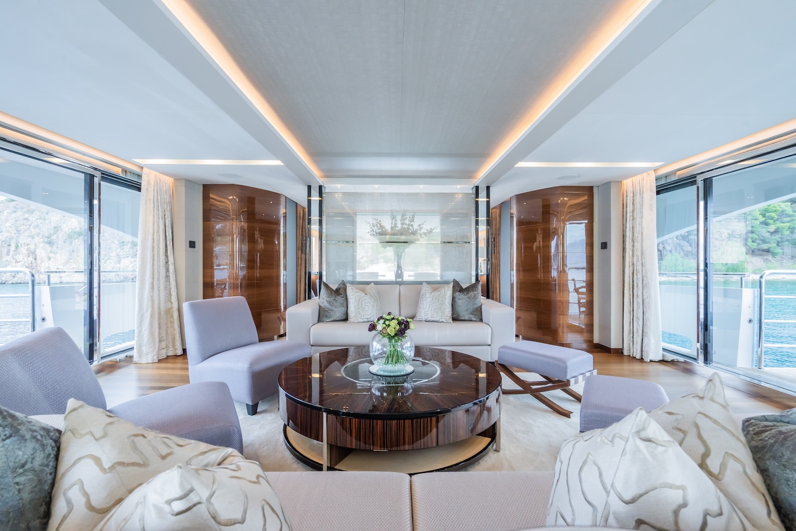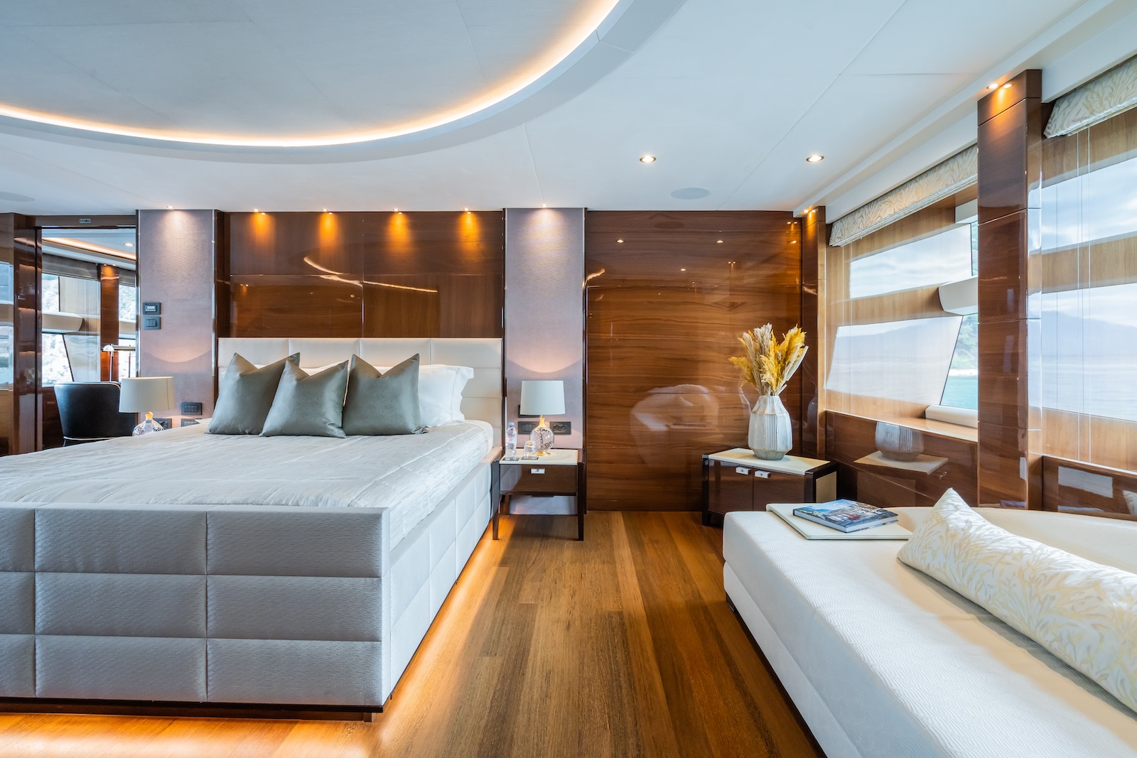 The 40m LE VERSEAU was built by the UK shipyard Princess Yachts, in 2016. World renowned for its leading innovation in boat design, the flagship Princess 40m exemplifies quality and luxuriousness and her sleek look will immediately capture your attention. Designed for comfortable long range cruising, her deep, resin infused hull lends itself to comfortable, precise handling, coupled with the digital ABT Trac 440 stabiliser system, gives her excellent sea keeping abilities in a wide range of weather conditions. However, it’s her size and space that will impress, as her 395 gross tonnes, put her at the forefront of interior volume for this size range of yacht.