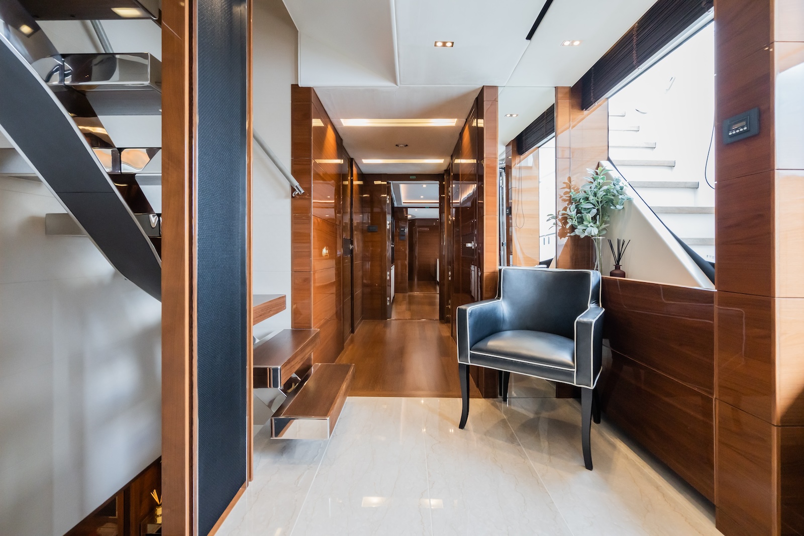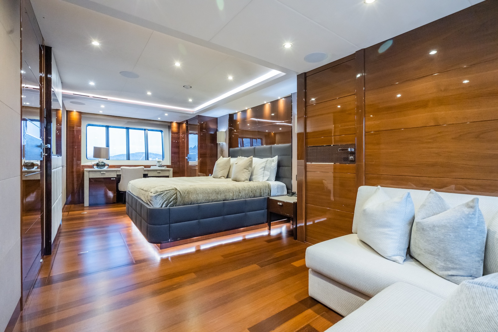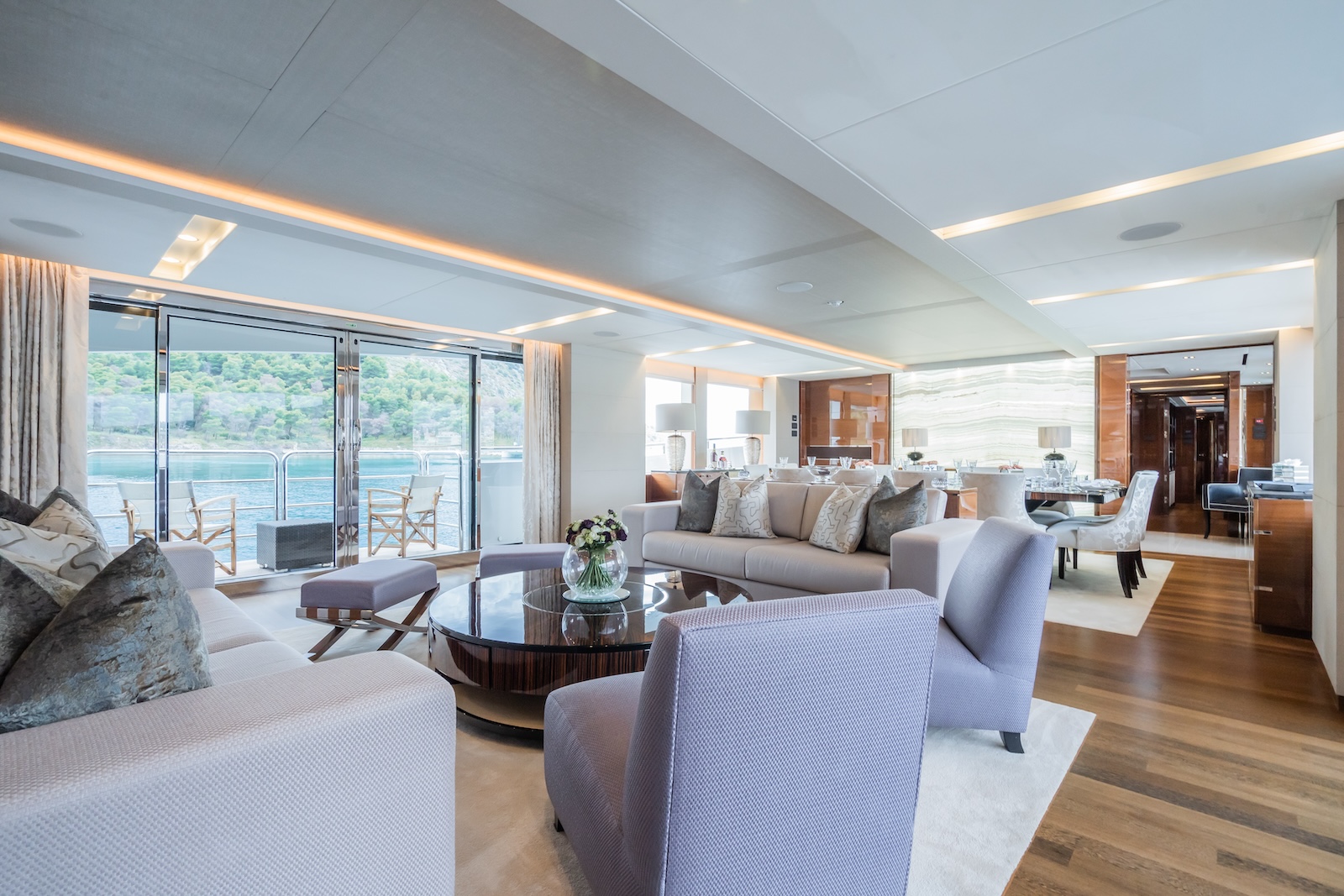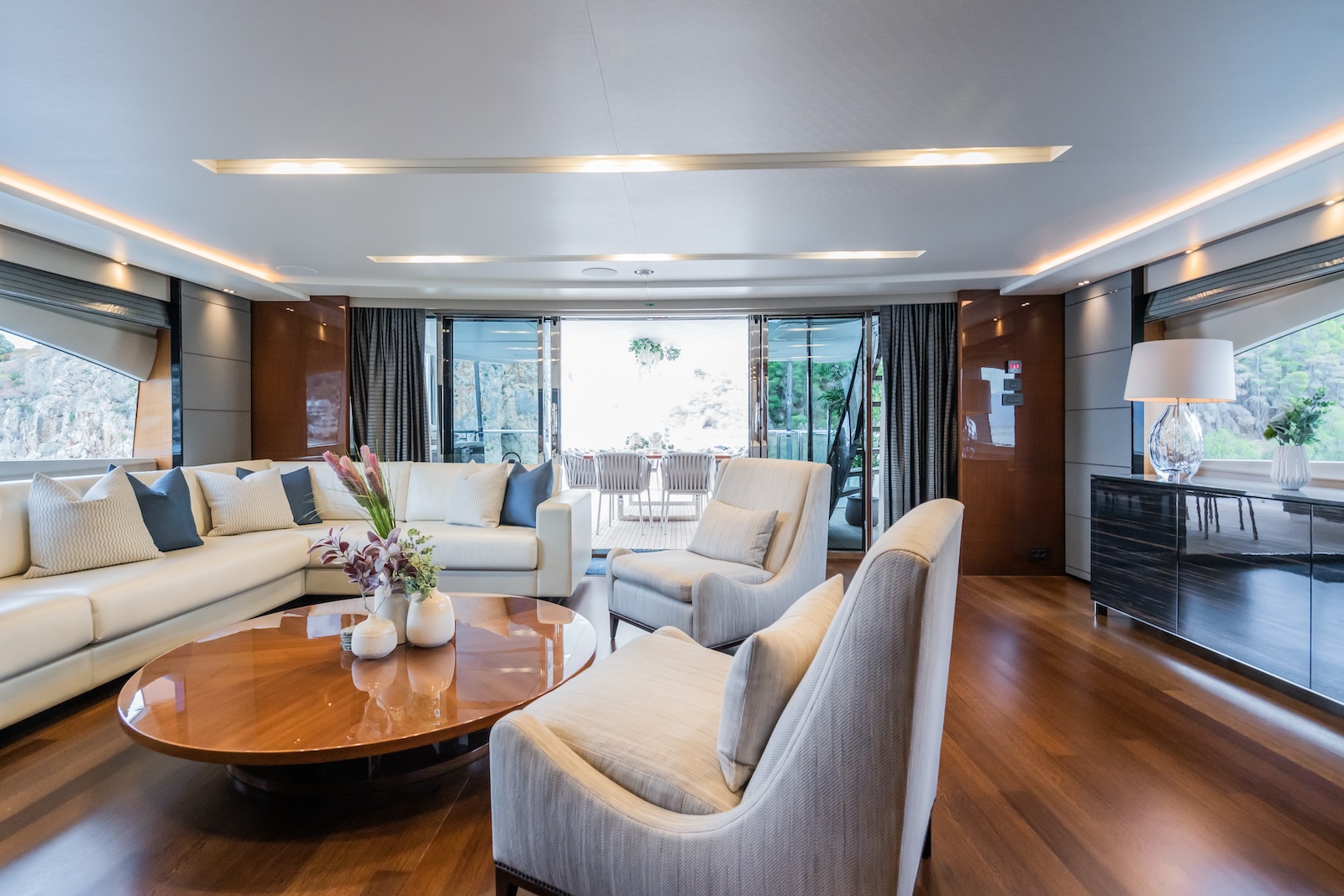 The 40m LE VERSEAU was built by the UK shipyard Princess Yachts, in 2016. World renowned for its leading innovation in boat design, the flagship Princess 40m exemplifies quality and luxuriousness and her sleek look will immediately capture your attention. Designed for comfortable long range cruising, her deep, resin infused hull lends itself to comfortable, precise handling, coupled with the digital ABT Trac 440 stabiliser system, gives her excellent sea keeping abilities in a wide range of weather conditions. However, it’s her size and space that will impress, as her 395 gross tonnes, put her at the forefront of interior volume for this size range of yacht.