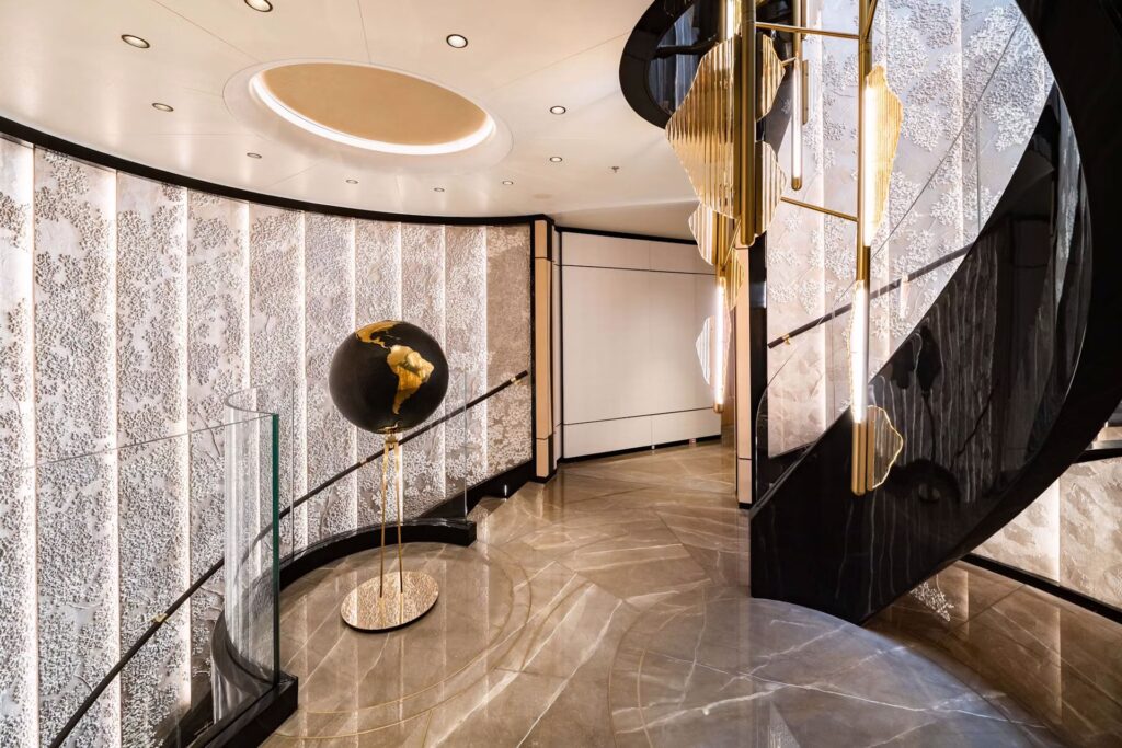 MALIA is equipped with a state-of-the-art elevator, offering effortless access between the lower accommodation deck, main deck, and bridge deck. Designed for convenience and sophistication, this feature ensures that guests can navigate the yacht with ease. Complementing the elevator, the yacht’s grand staircase boasts sleek architectural lines and elegant detailing, adding to the vessel’s refined ambiance. Whether moving between social areas or retreating to private quarters, every transition aboard MALIA is seamless and luxurious.
