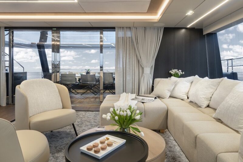 Welcome aboard to an unparalleled journey of luxury and sophistication. The yacht’s interior is meticulously designed to offer the ultimate in comfort and elegance.Â