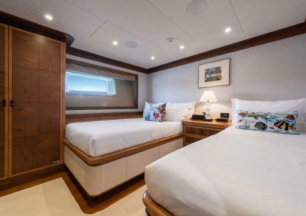 The spacious cabins are havens of tranquility, featuring plush bedding and panoramic windows that frame the mesmerizing seascapes.Â