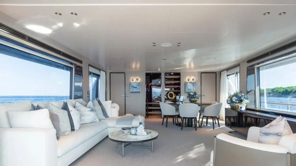 Welcome aboard to an unparalleled journey of luxury and sophistication. The yacht’s interior is meticulously designed to offer the ultimate in comfort and elegance.Â