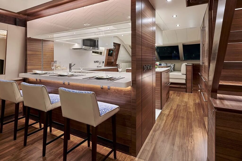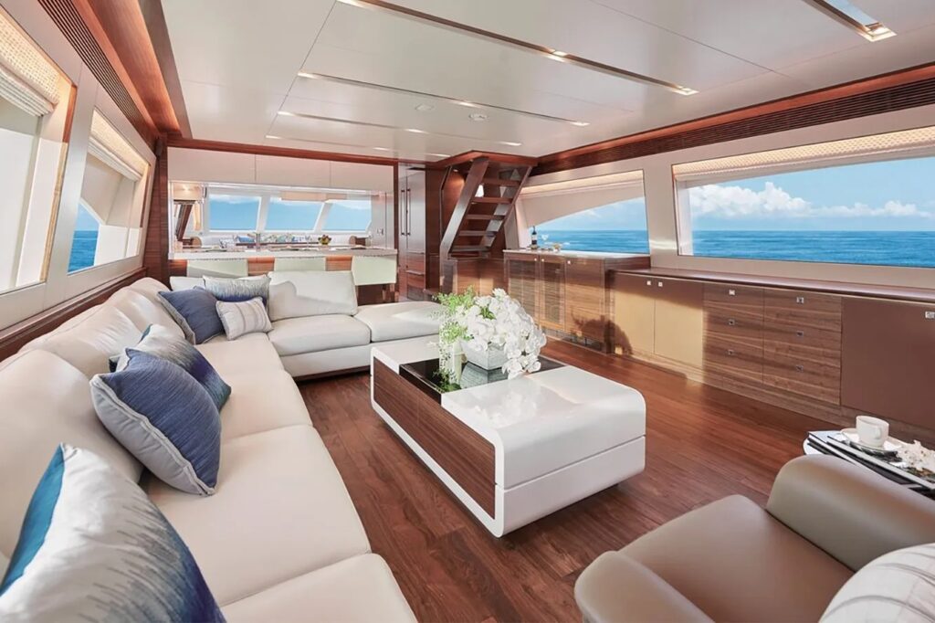 Welcome aboard to an unparalleled journey of luxury and sophistication. The yacht’s interior is meticulously designed to offer the ultimate in comfort and elegance.Â