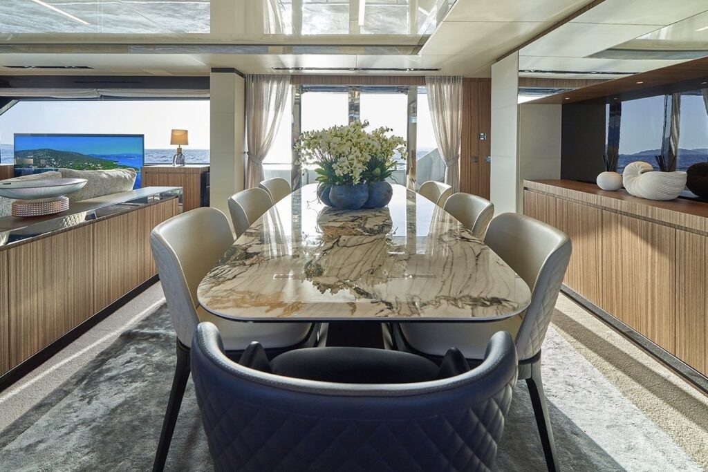 Welcome aboard to an unparalleled journey of luxury and sophistication. The yacht’s interior is meticulously designed to offer the ultimate in comfort and elegance.Â