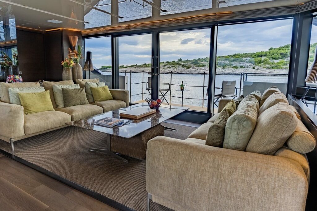 Welcome aboard to an unparalleled journey of luxury and sophistication. The yacht’s interior is meticulously designed to offer the ultimate in comfort and elegance.Â