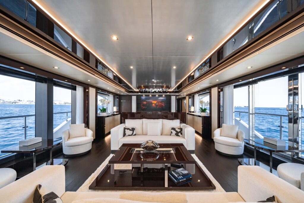 Welcome aboard to an unparalleled journey of luxury and sophistication. The yacht’s interior is meticulously designed to offer the ultimate in comfort and elegance.Â