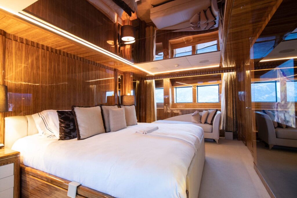 The spacious cabins are havens of tranquility, featuring plush bedding and panoramic windows that frame the mesmerizing seascapes.Â